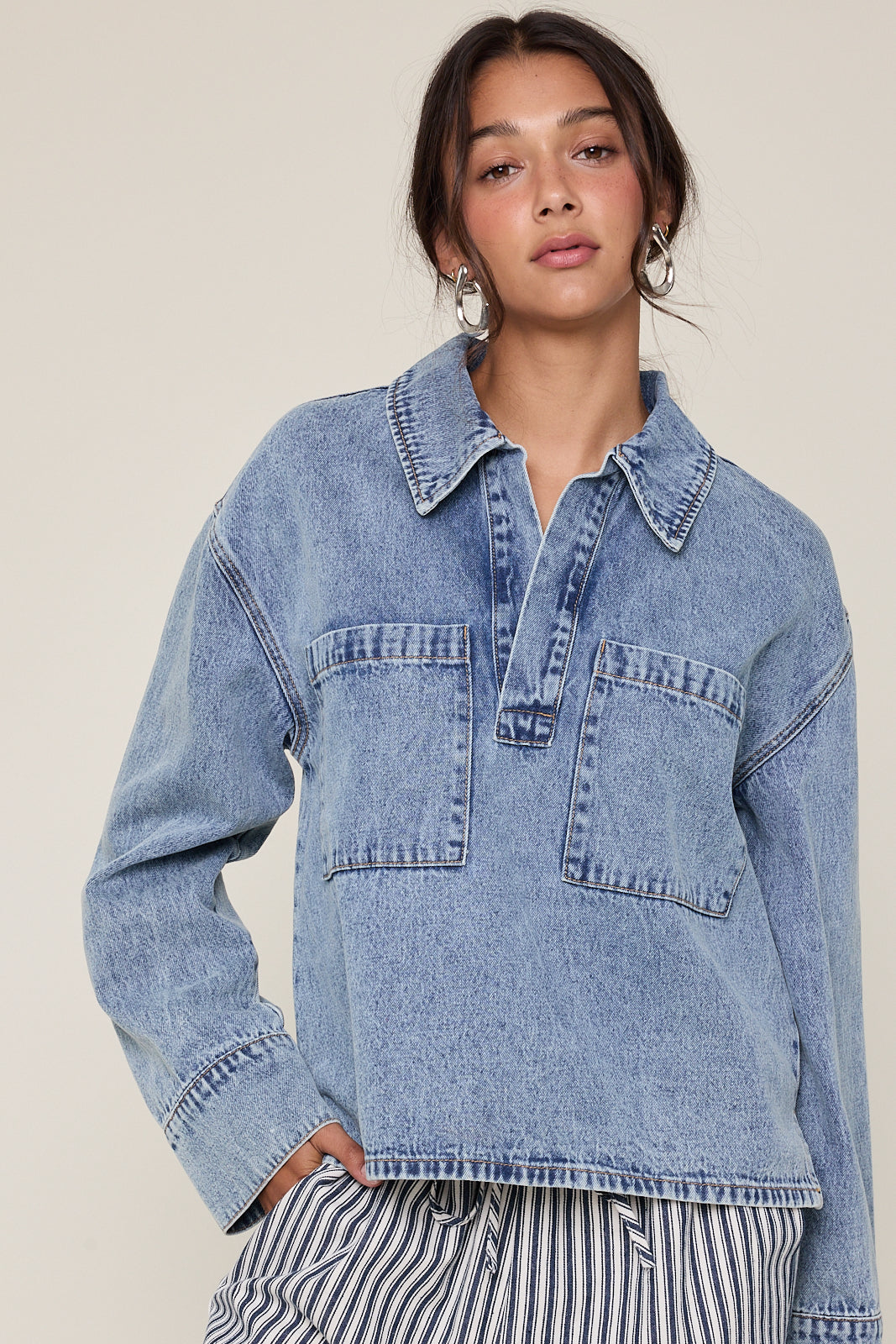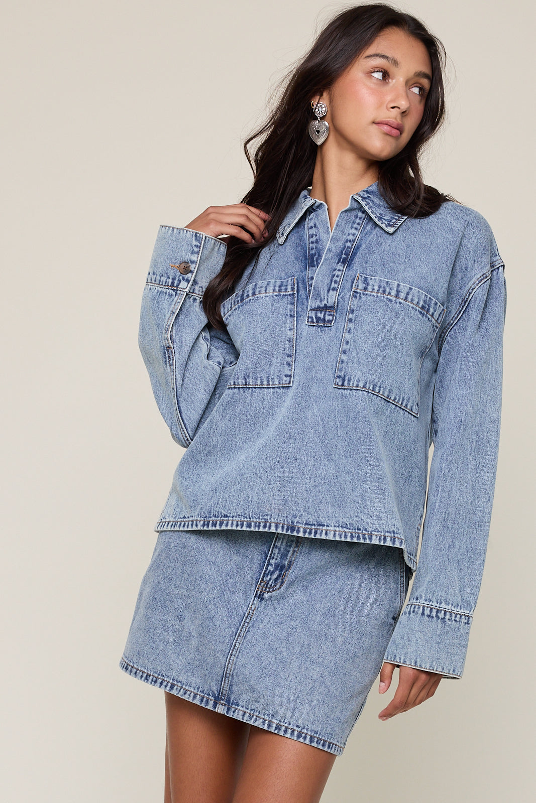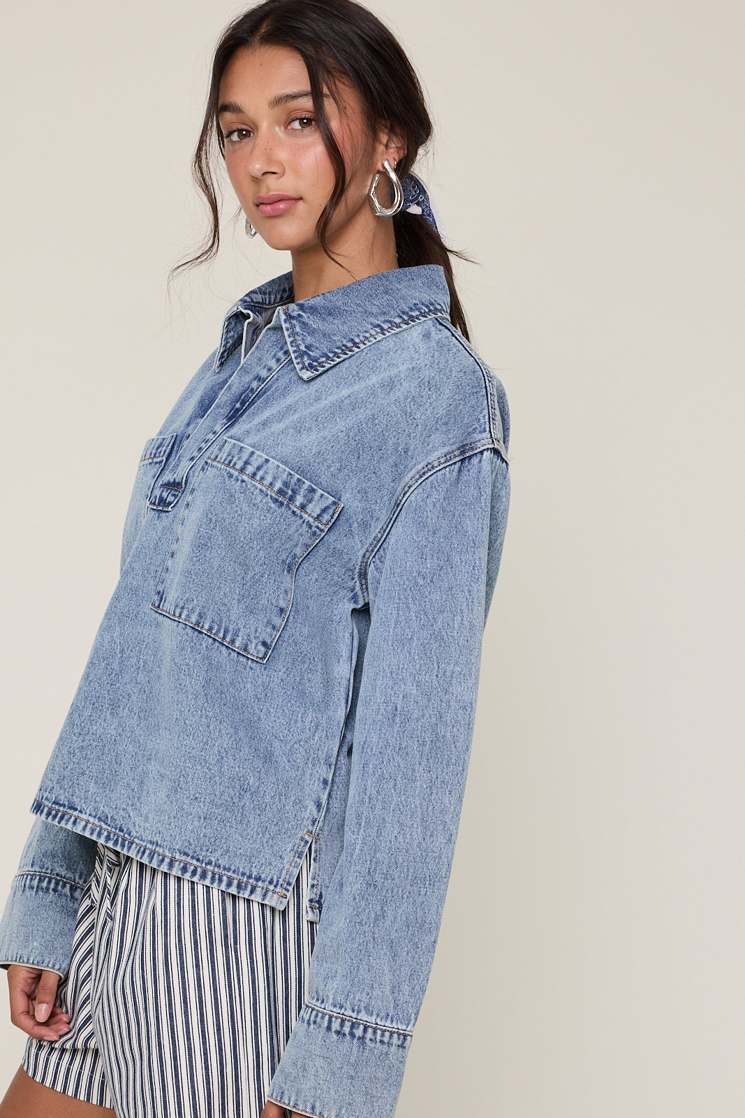 metropolitan mood collared denim shirt