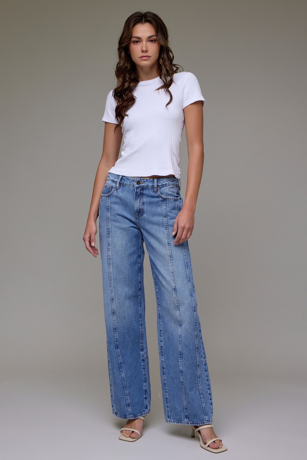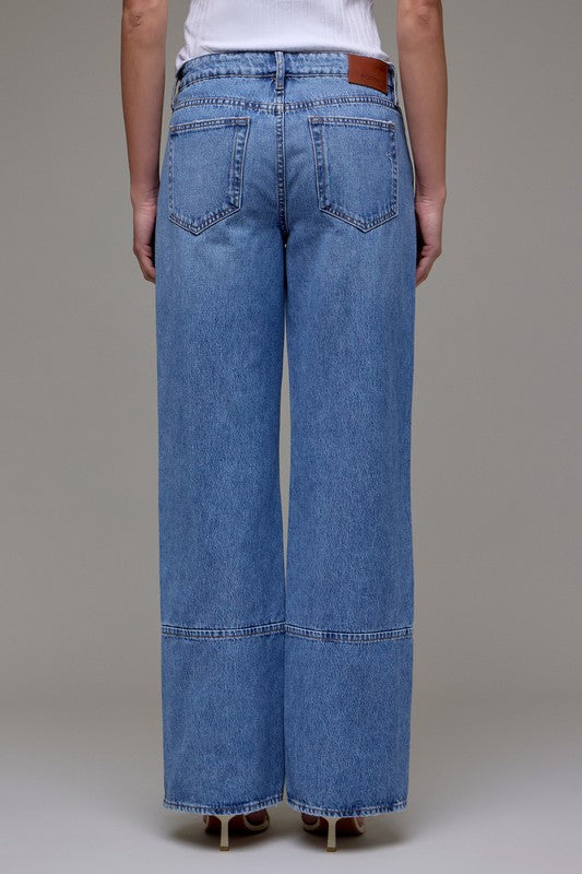 • Medium wash front seam classic relaxed Dad jean