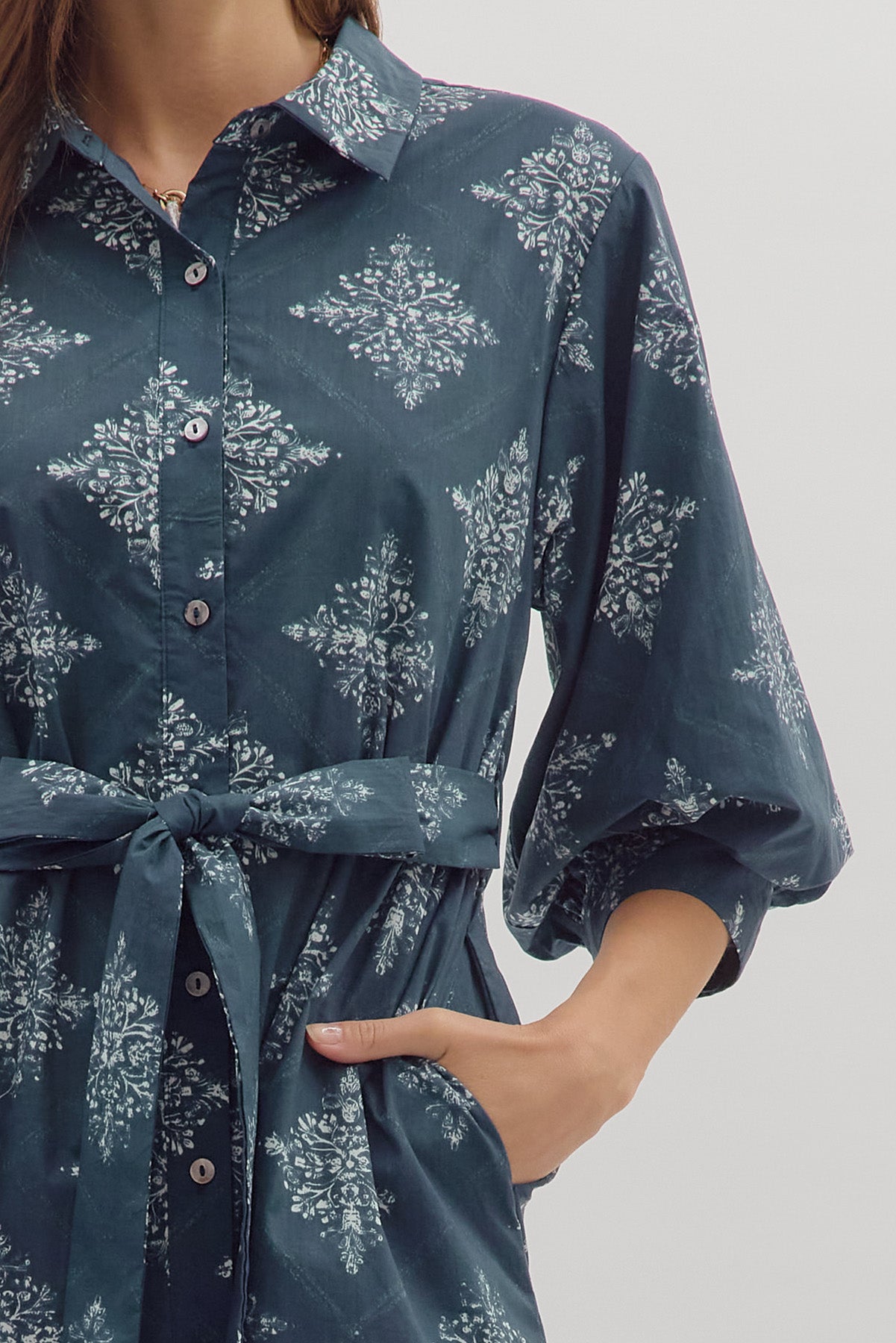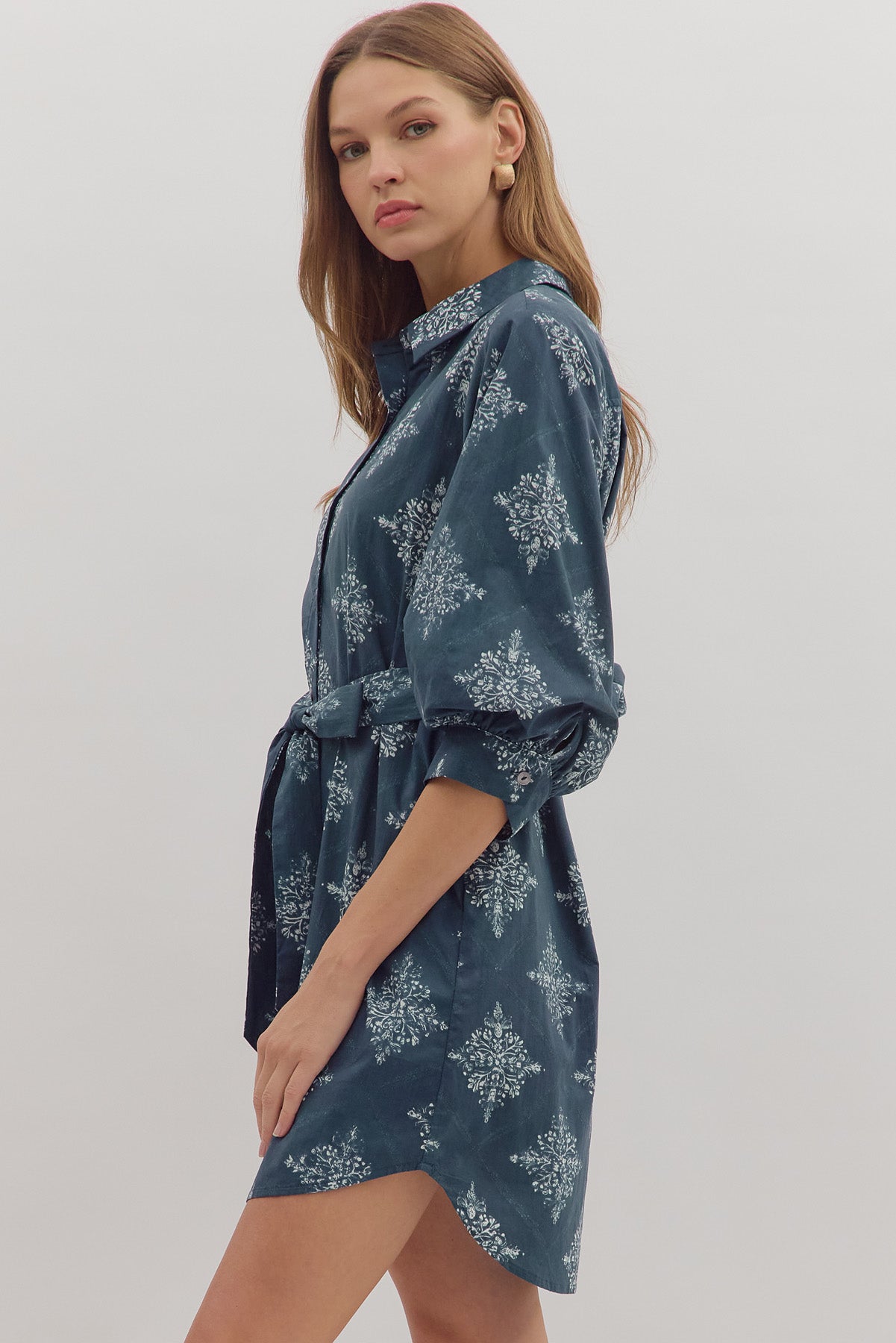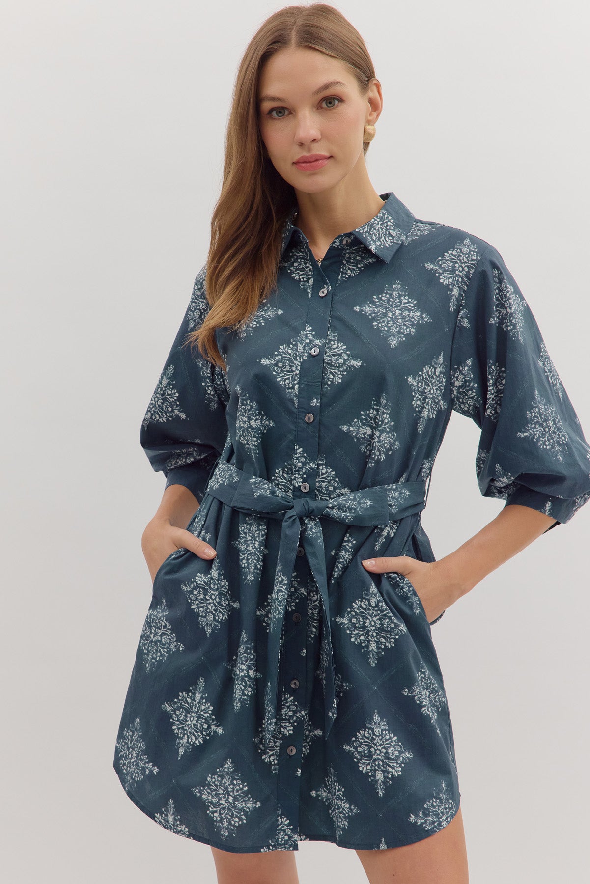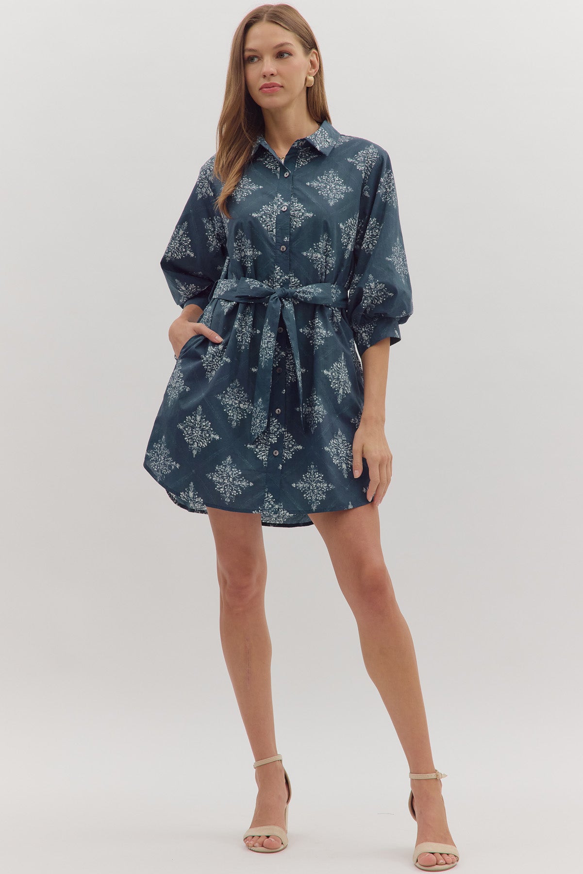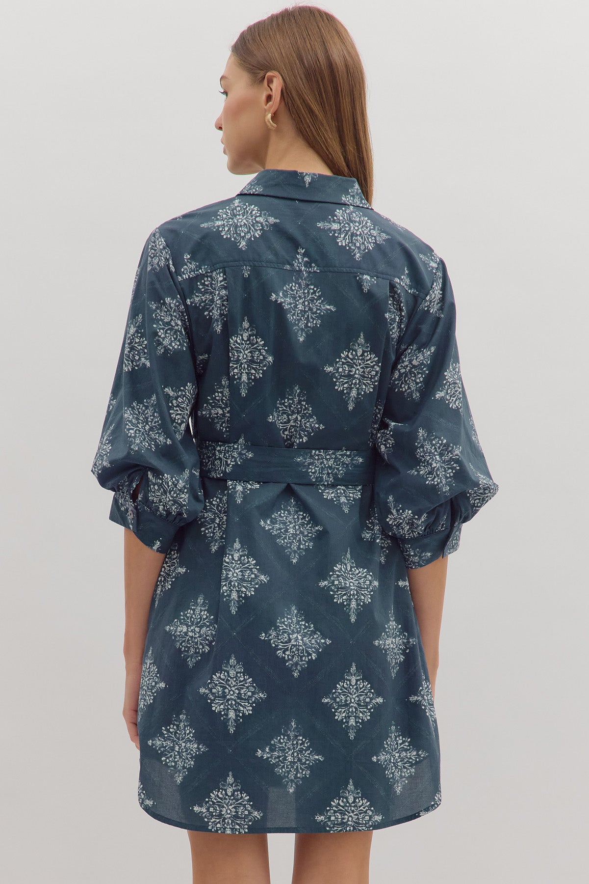 • Medallion print 3/4 sleeve mini dress