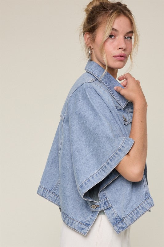 • Denim poncho jacket