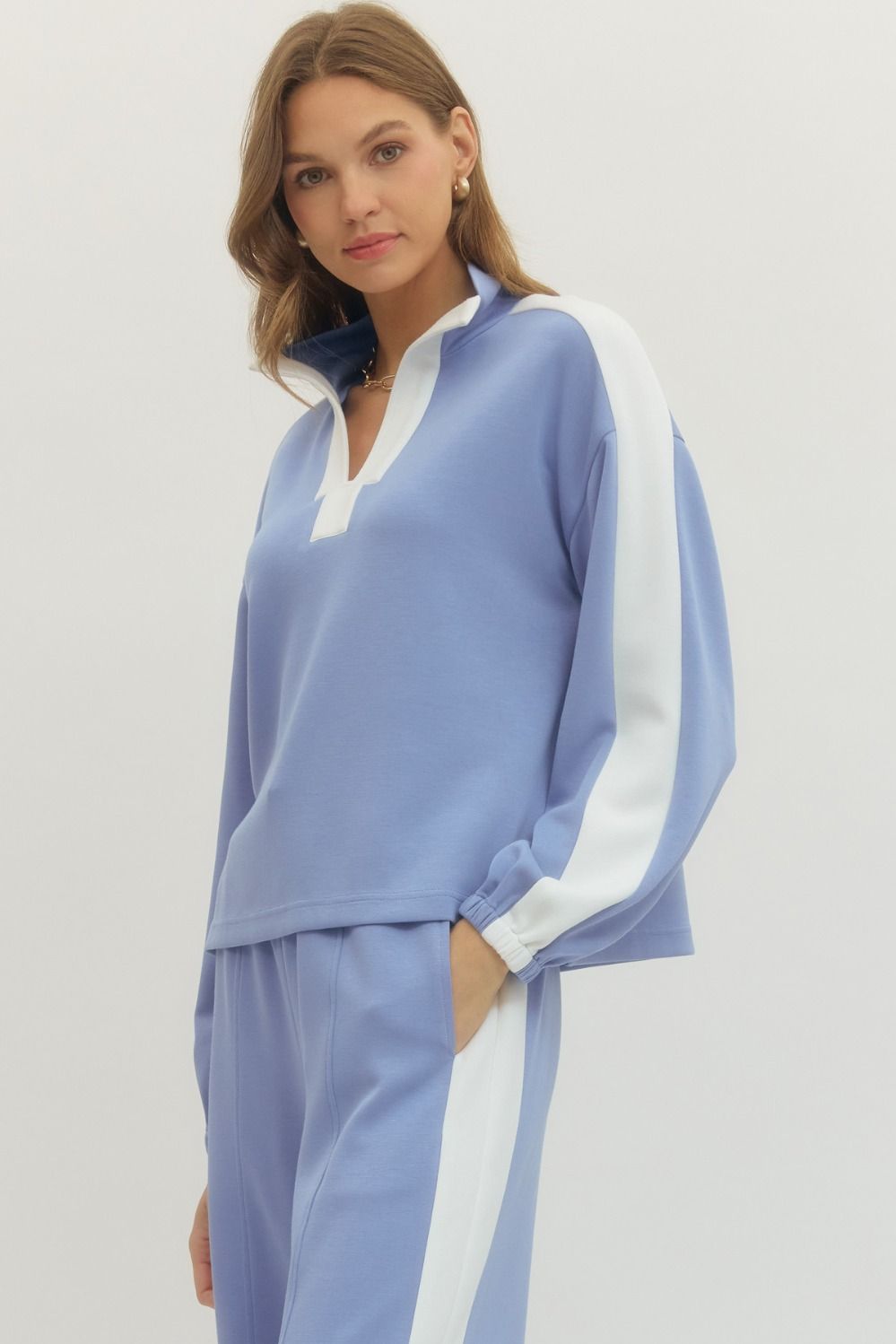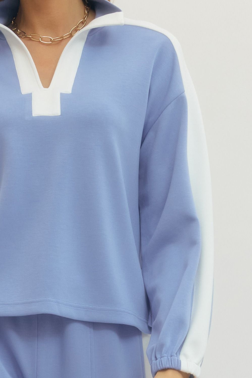 running all about color contrast pullover - light blue
