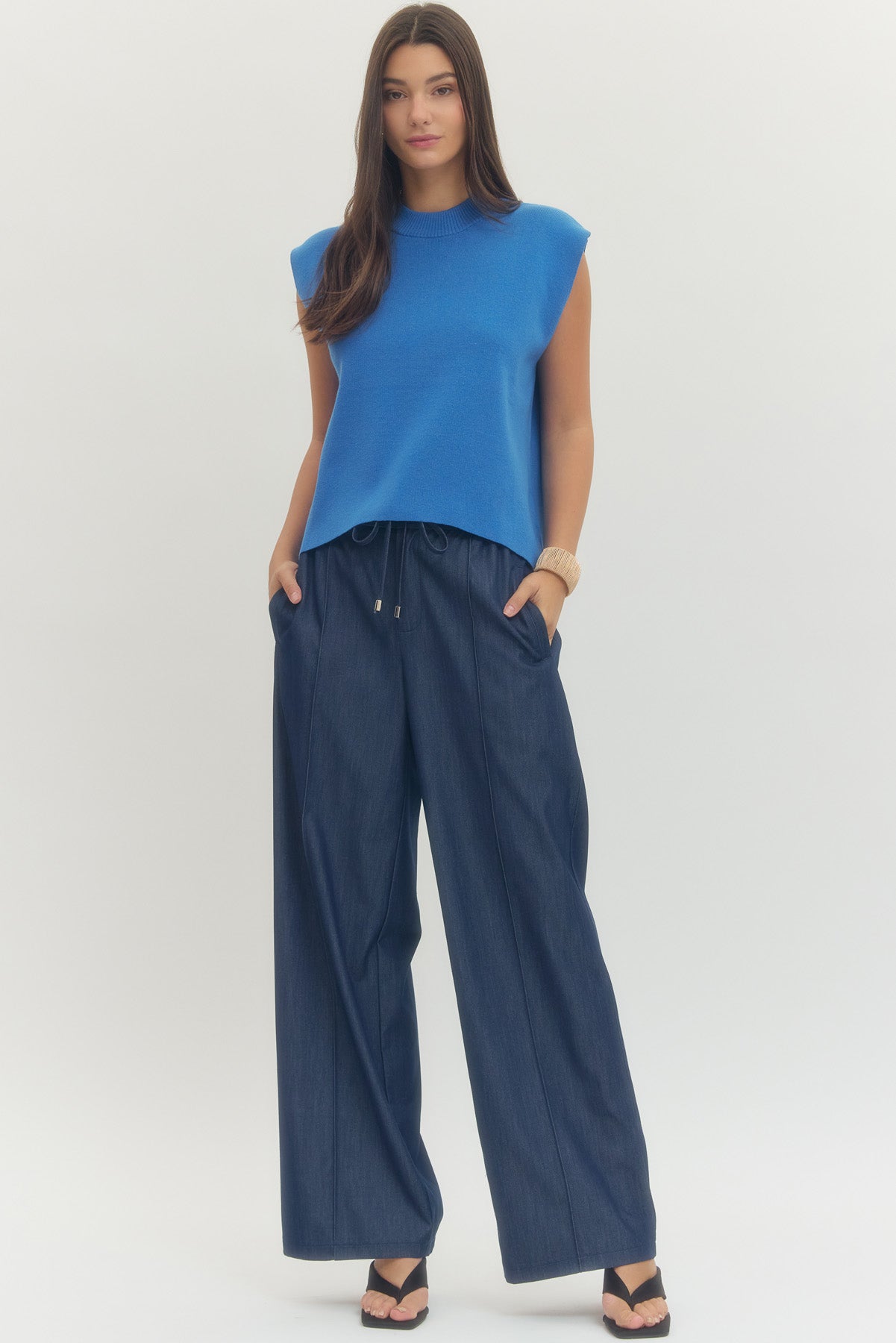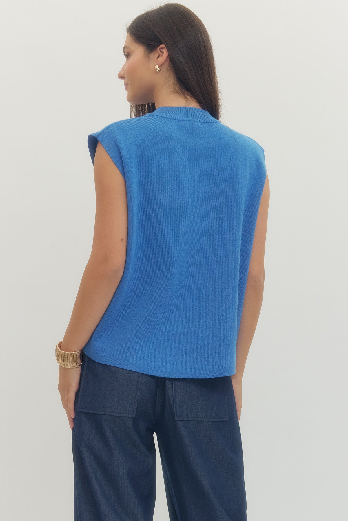 well defined sleeveless knit top - blue