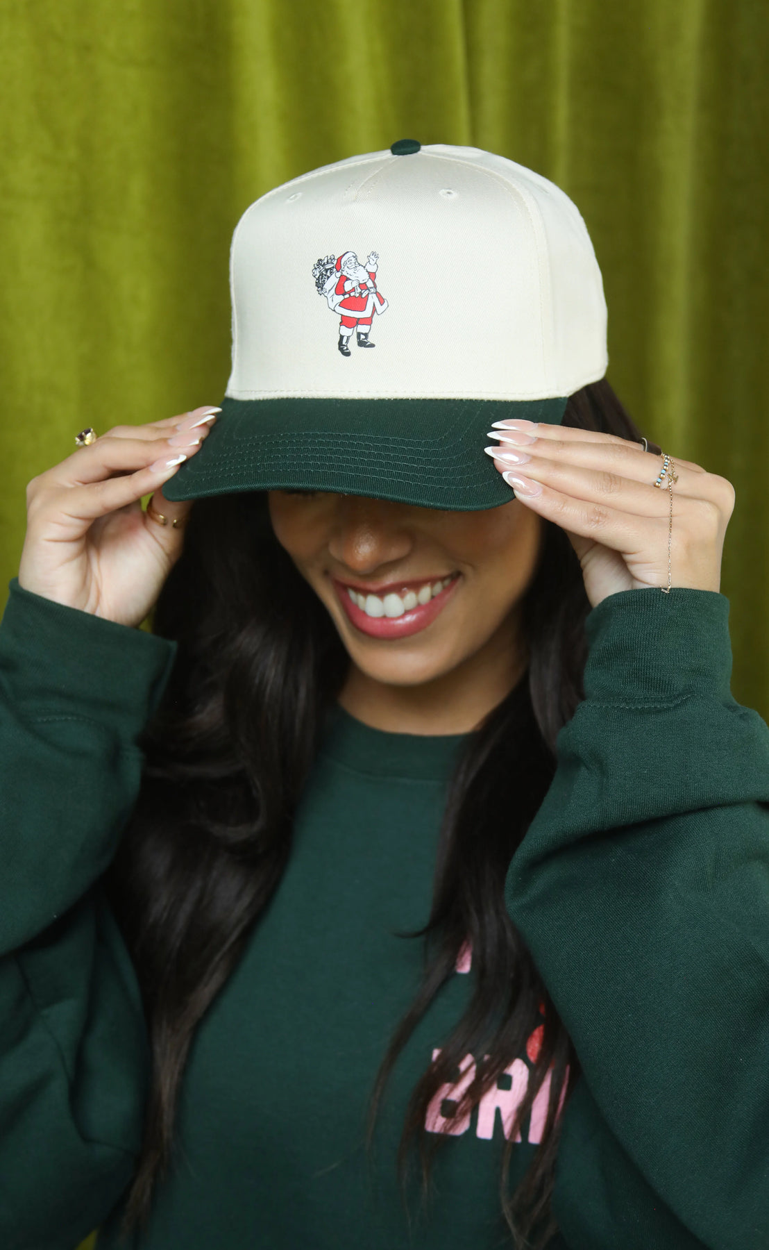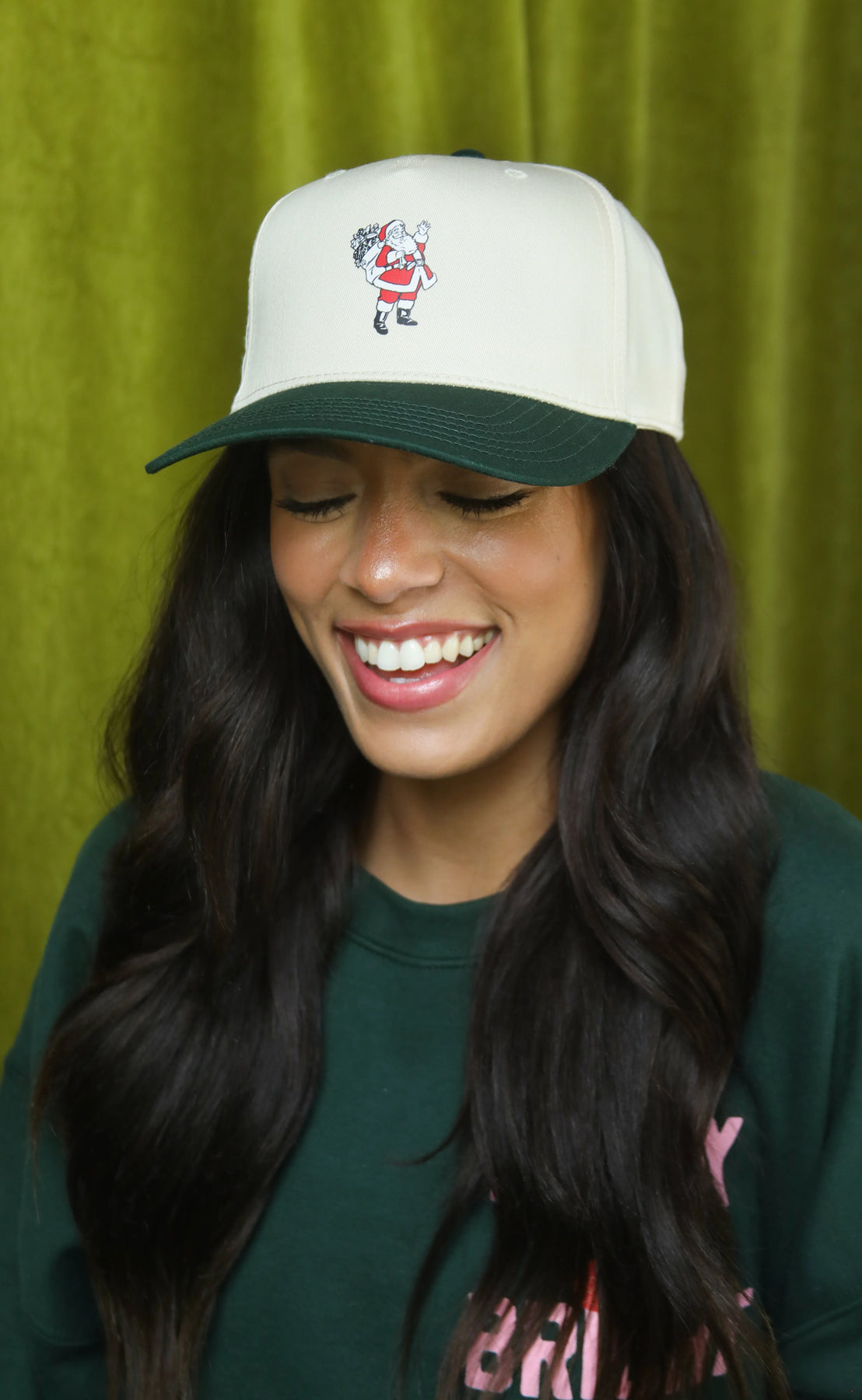 Say hello to holiday cheer! This ivory and green trucker features a tiny Santa waving and carrying a bag of toys - a cute, festive accent that’s perfect for everyday wear or spreading smiles wherever you go.