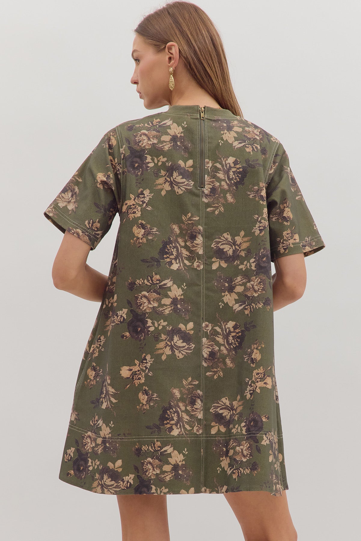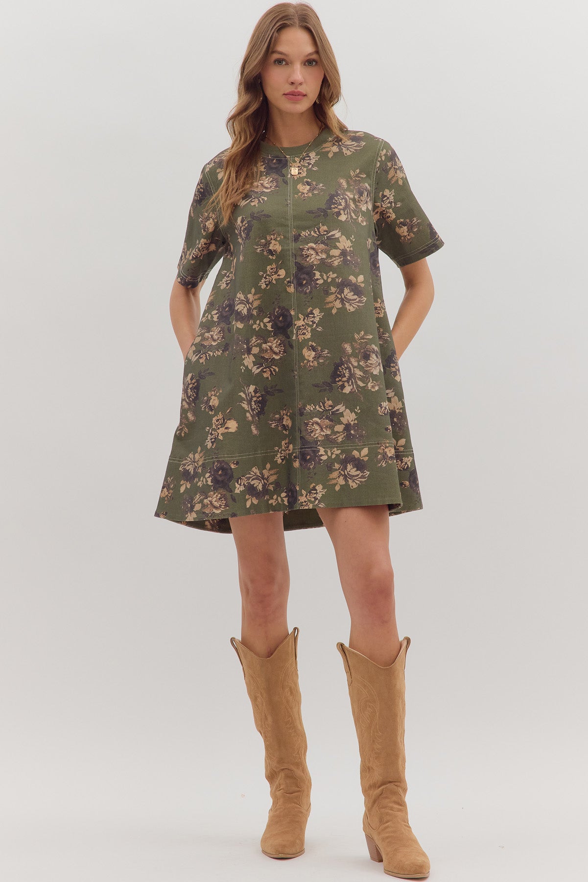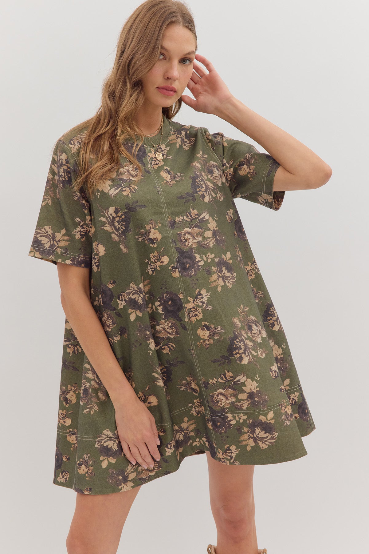 whispering winds patterned mini dress - olive