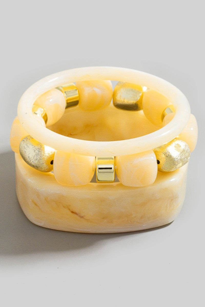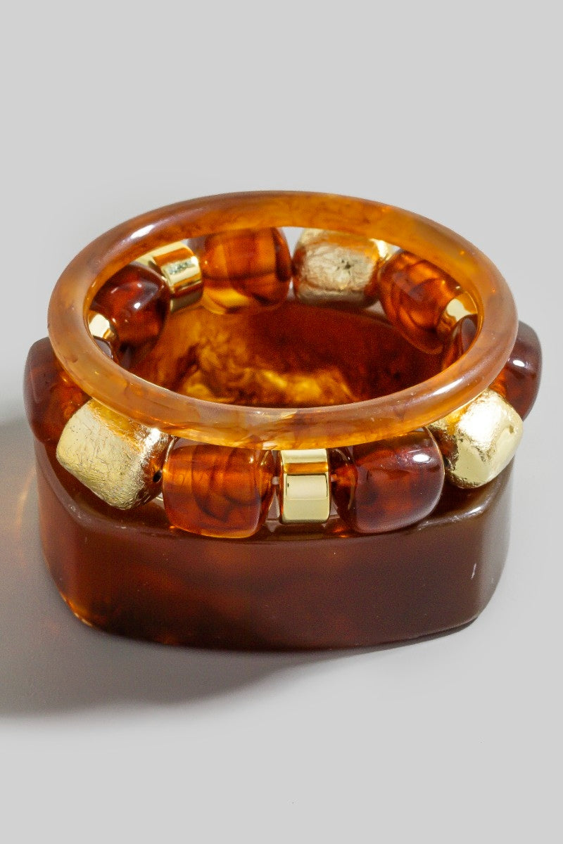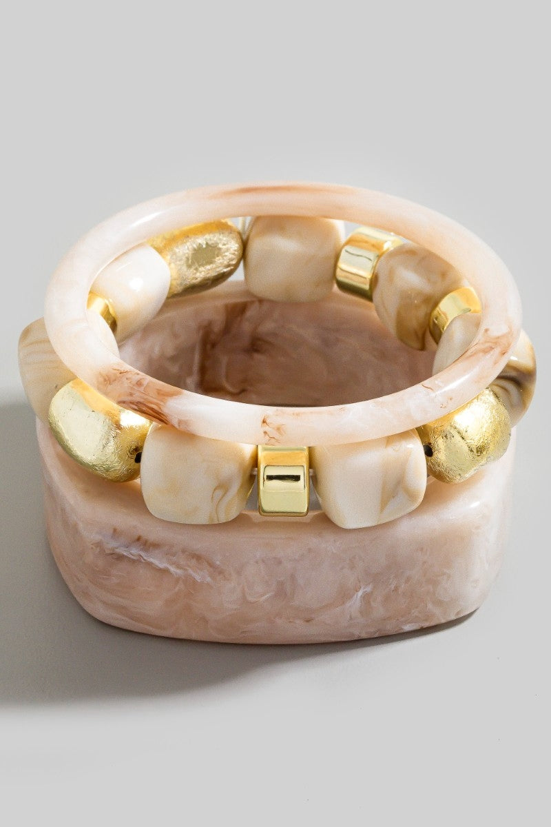 Mixed square resin bangle & beads bracelet set