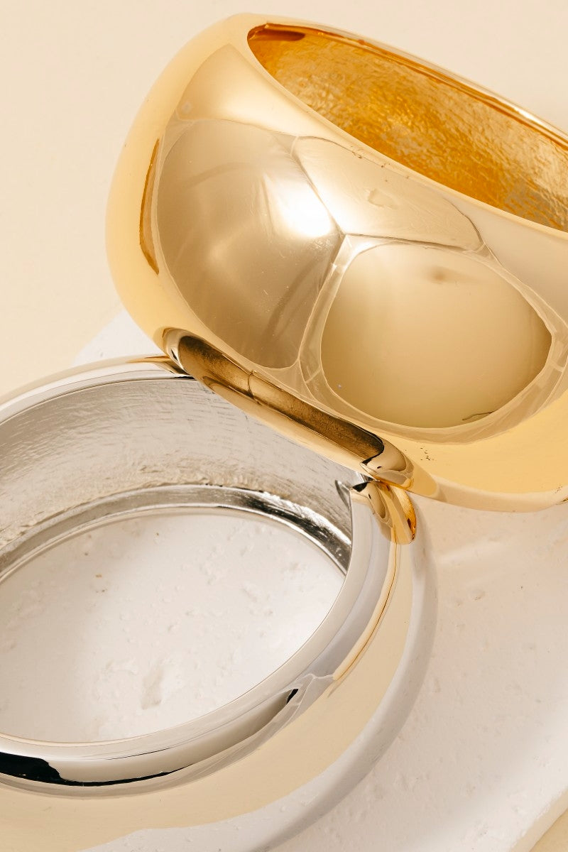 Simple wide rounded hinge bangle bracelet
