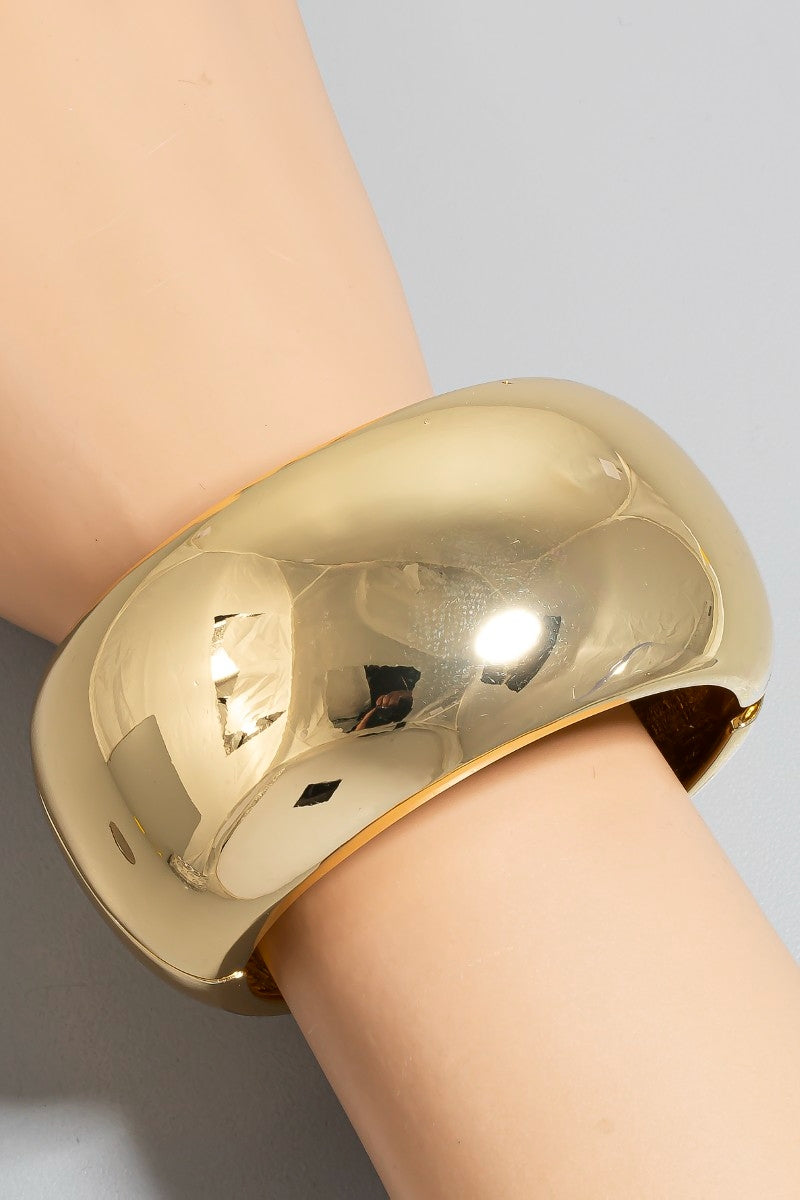 wide rounded hinge bangle bracelet - gold