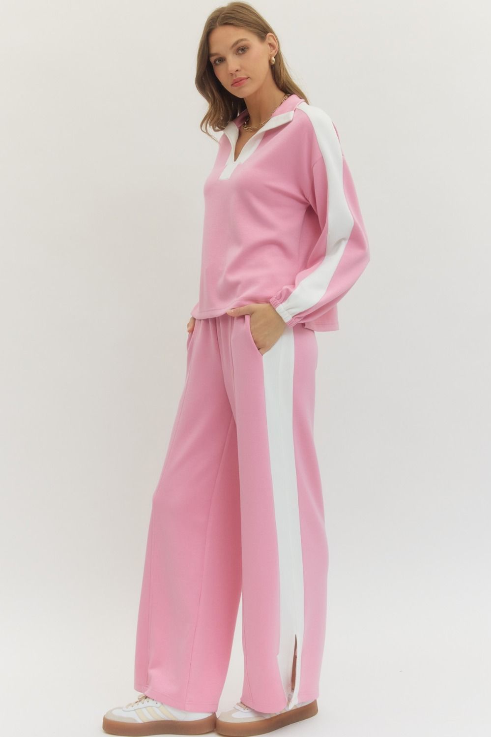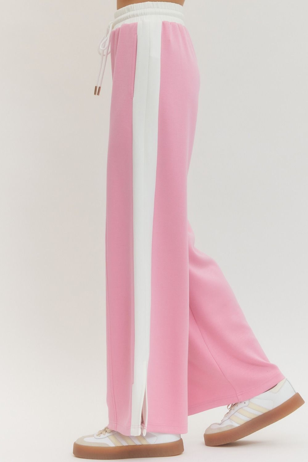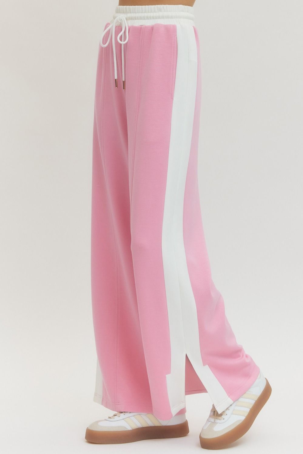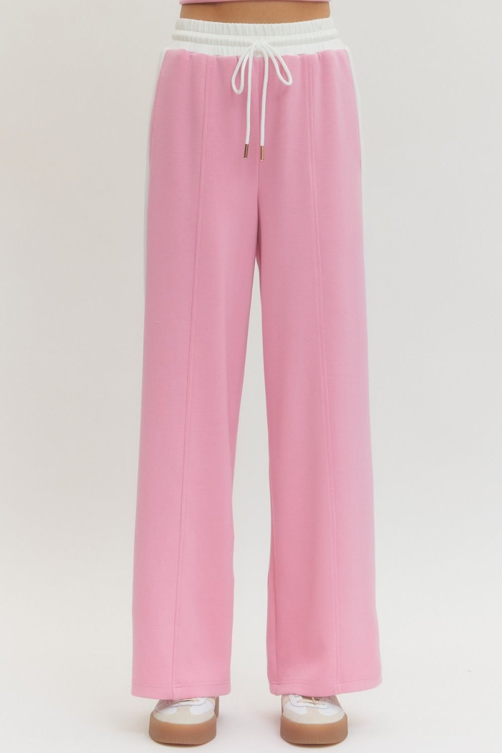 • Solid wide leg knit pants featuring elastic waistband with drawstring