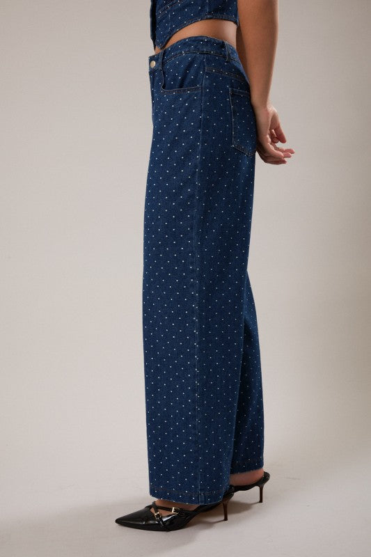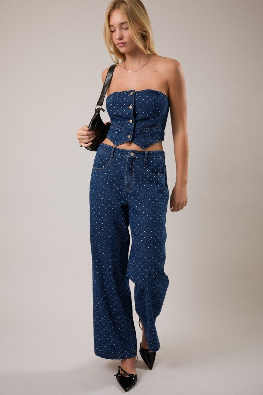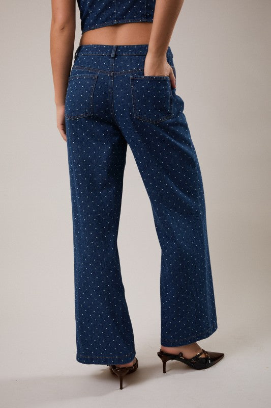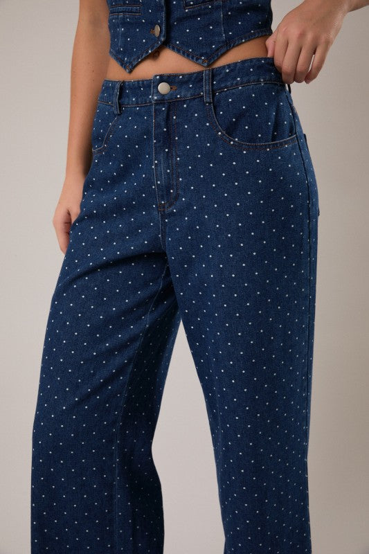 • Mid-rise polka dot denim pants