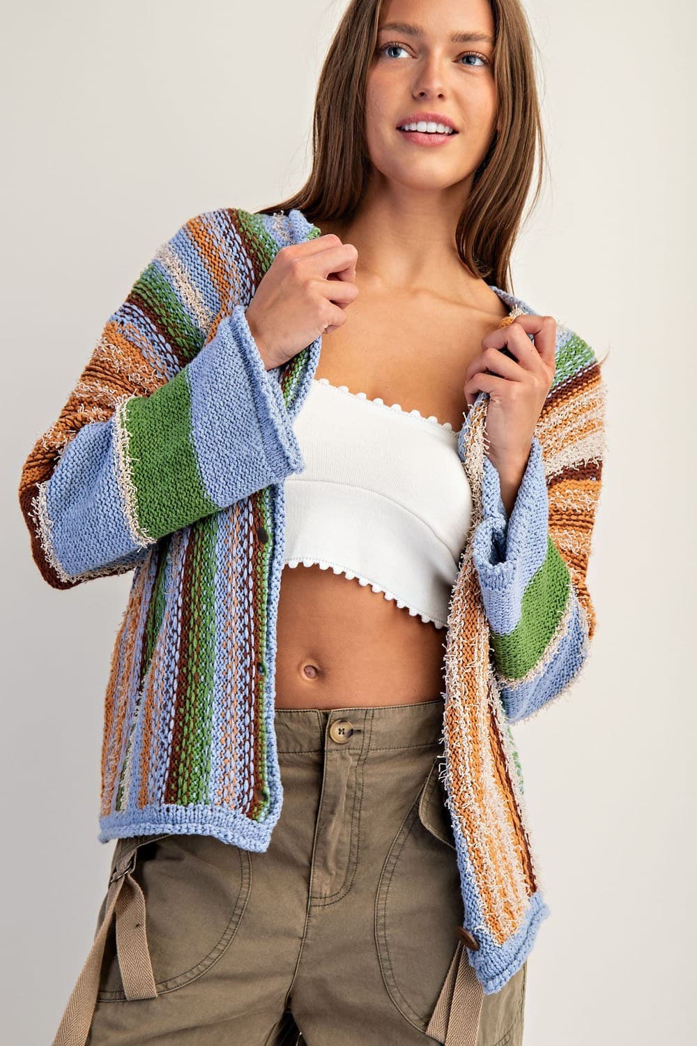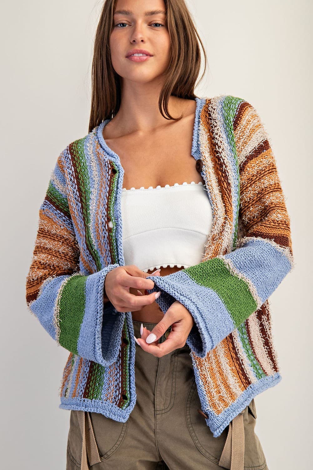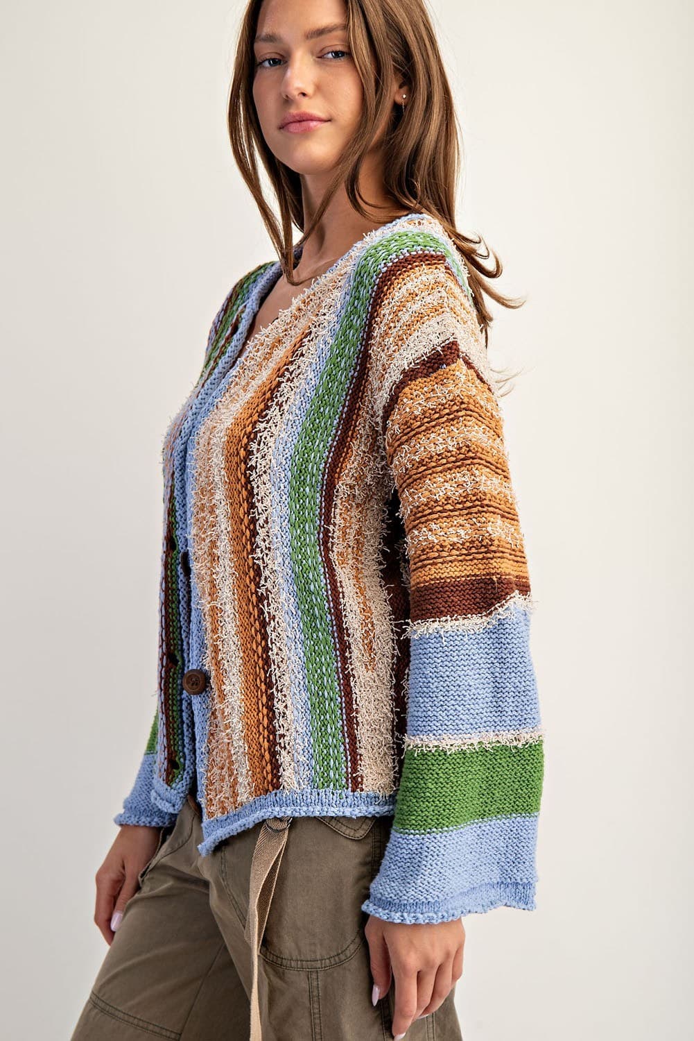 • Multi color boho style button front sweater