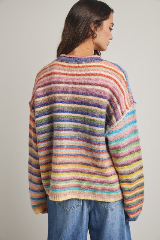 • Rainbow button up knit sweater cardigan
