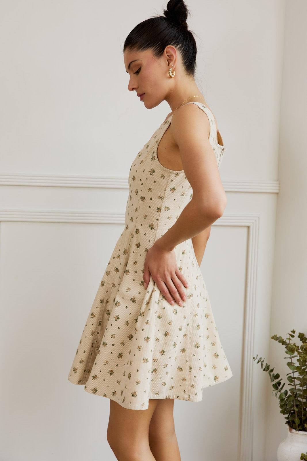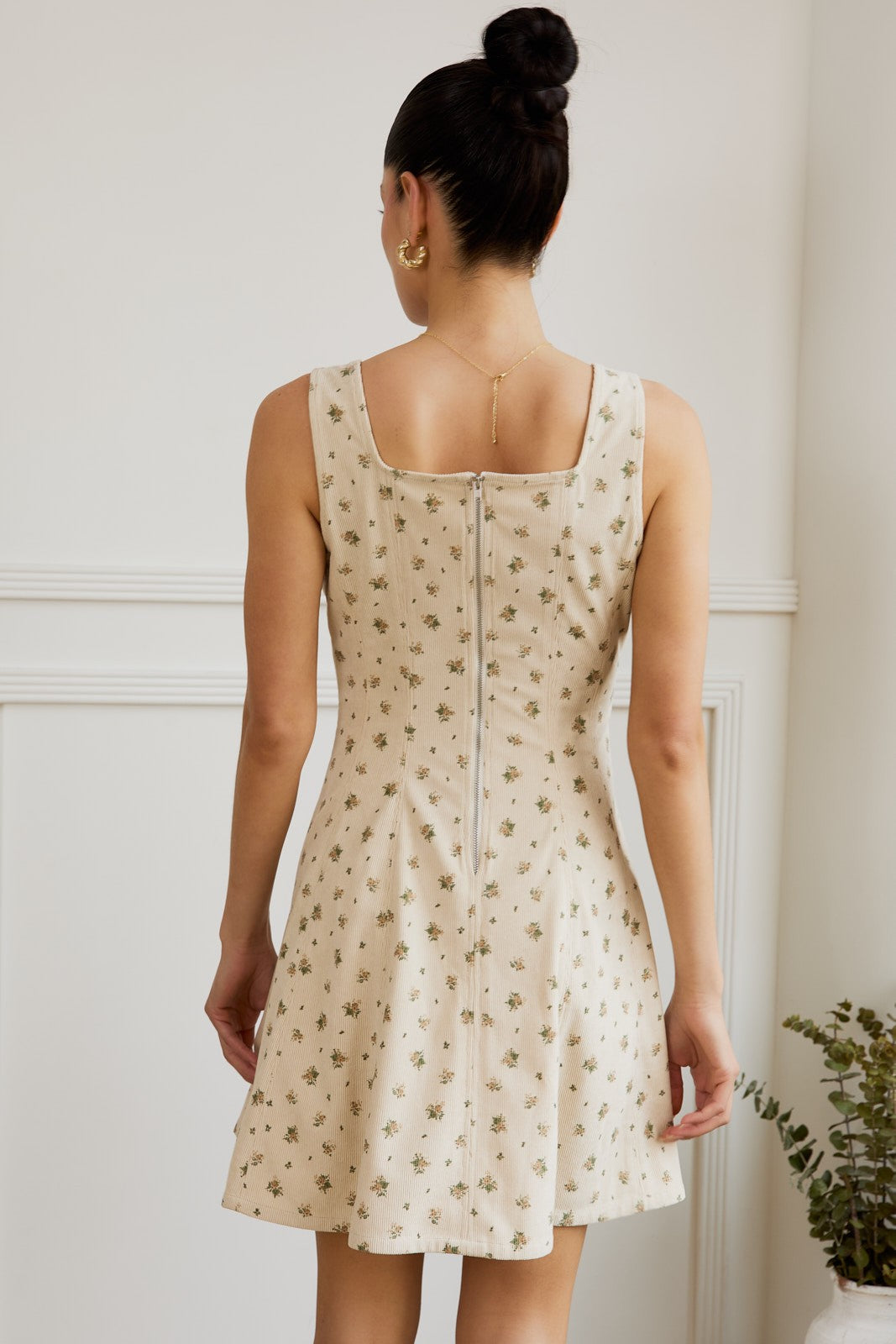 • Square neck sleeveless stretch corduroy fit & flare mini dress