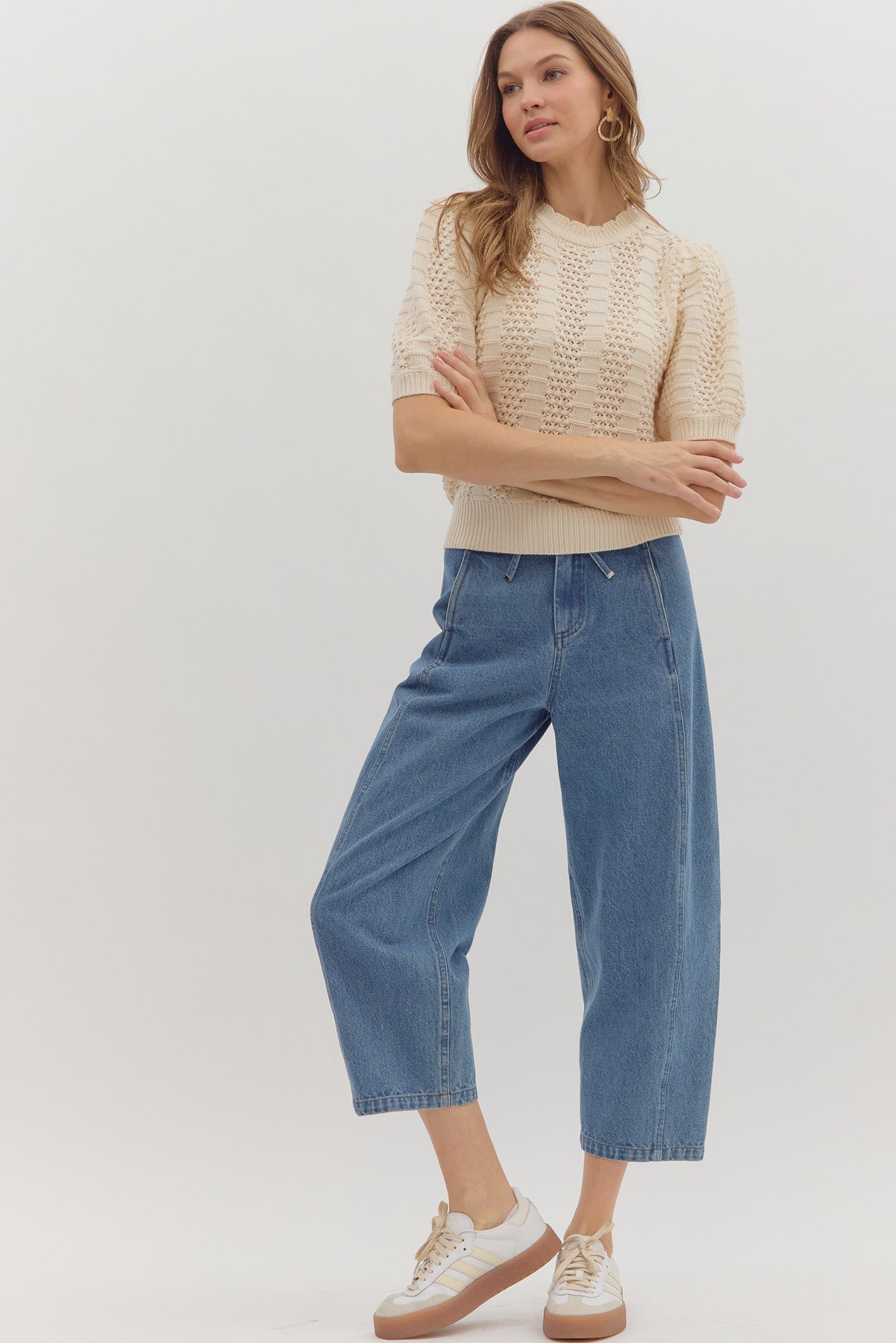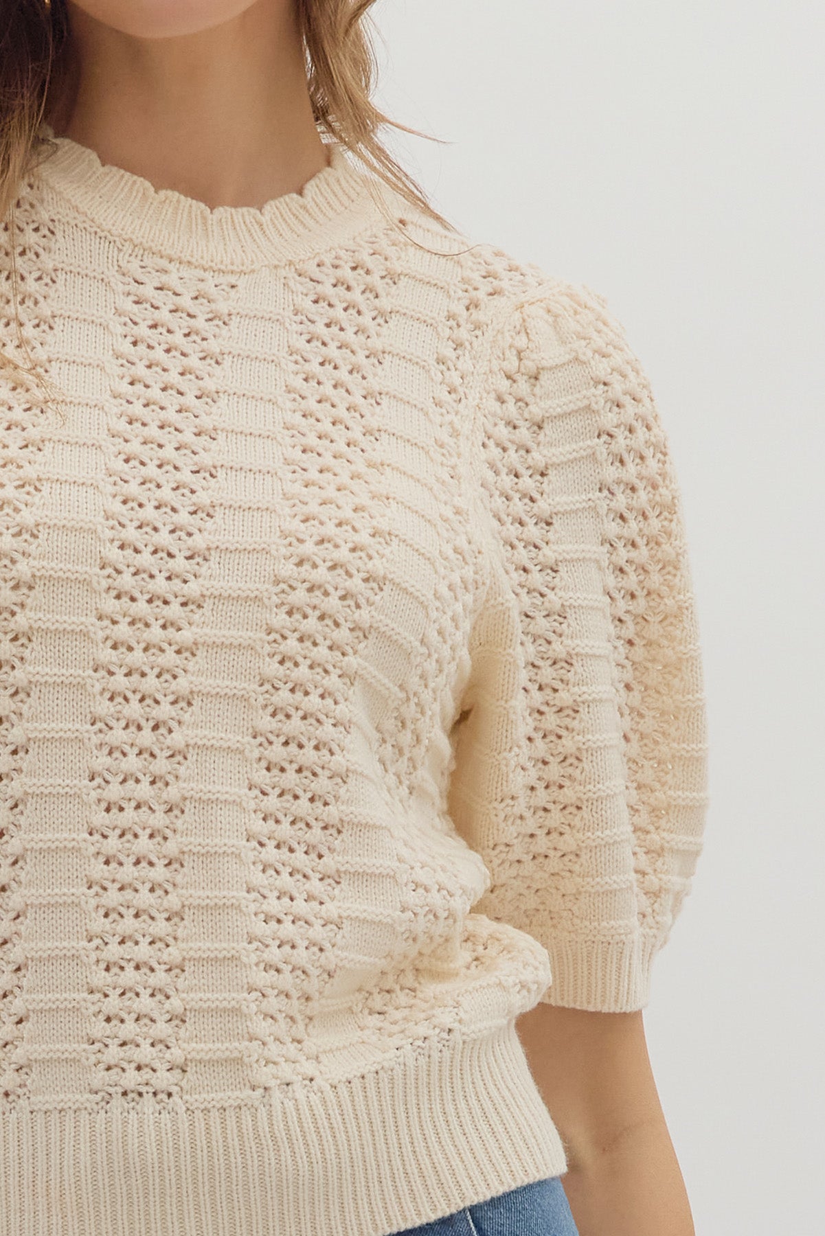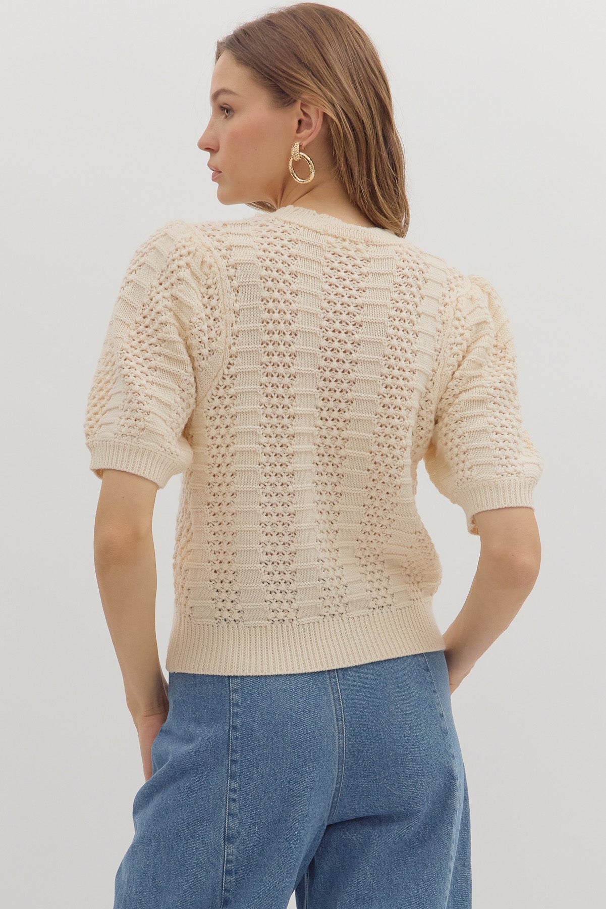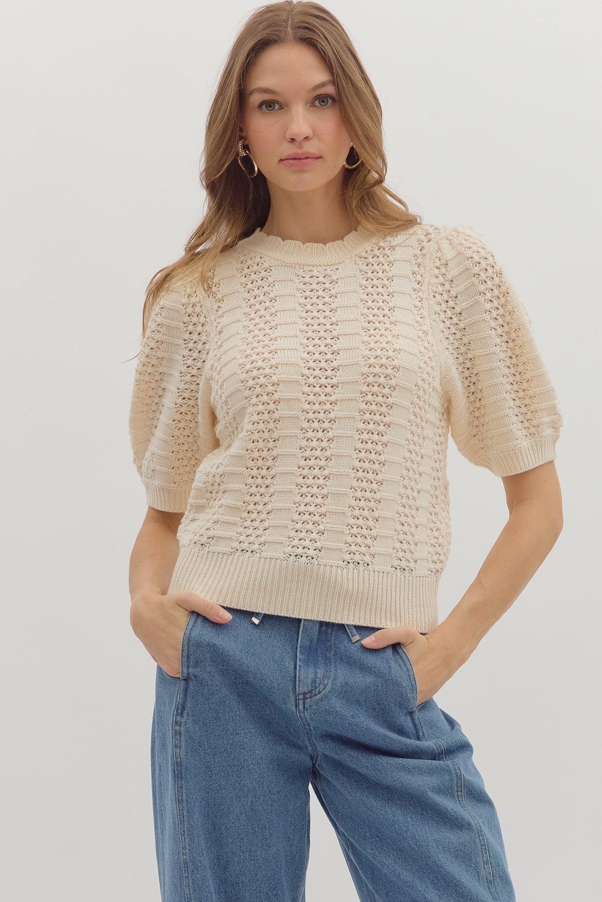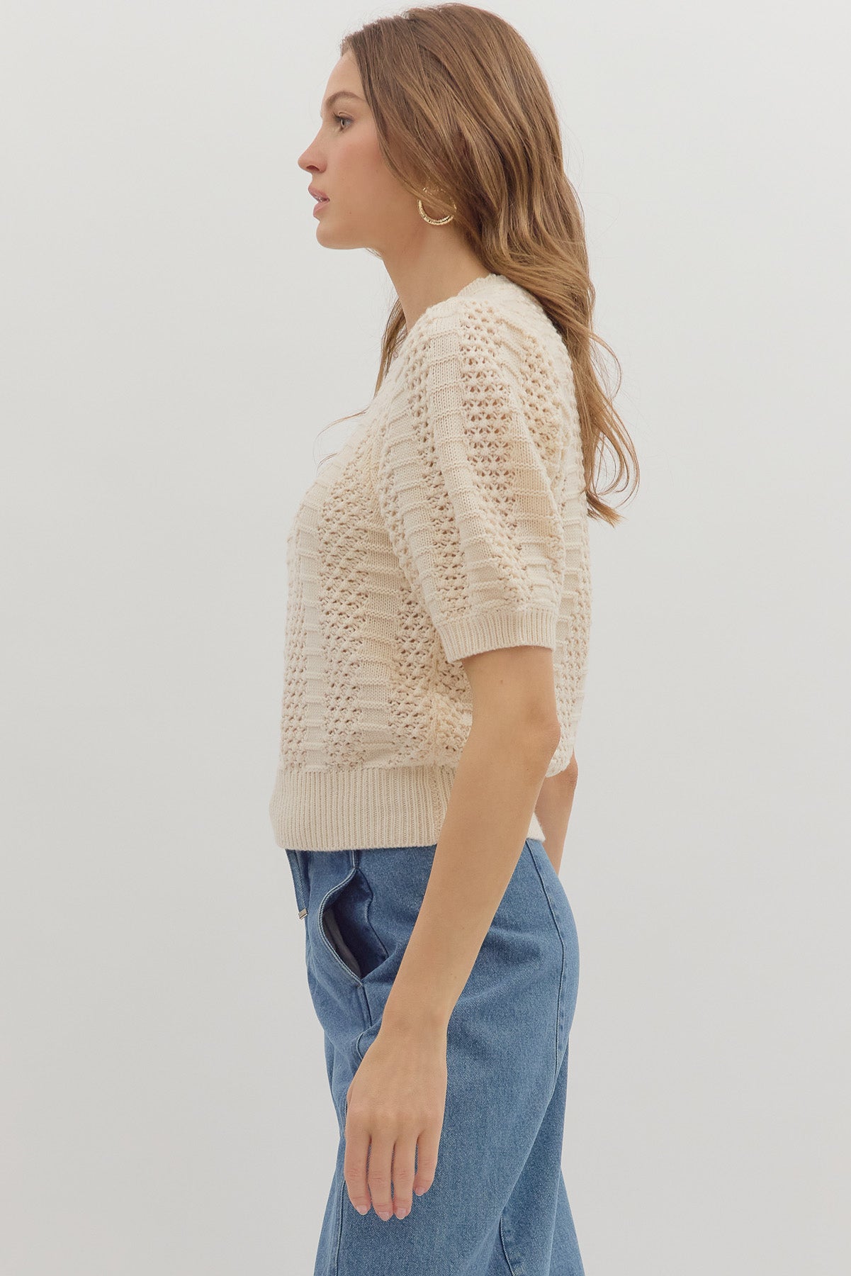 • Solid multi-pattern short sleeve sweater knit pullover top