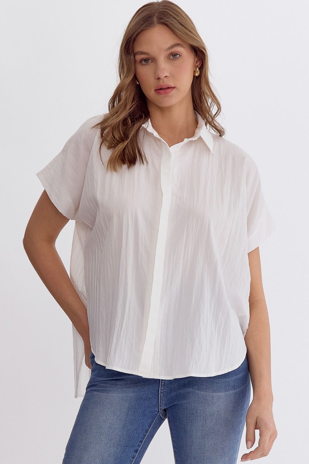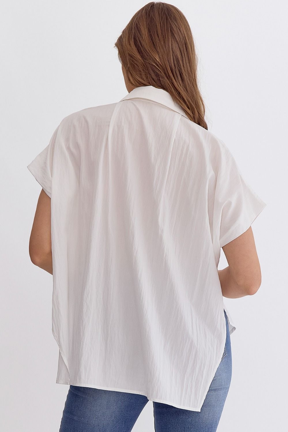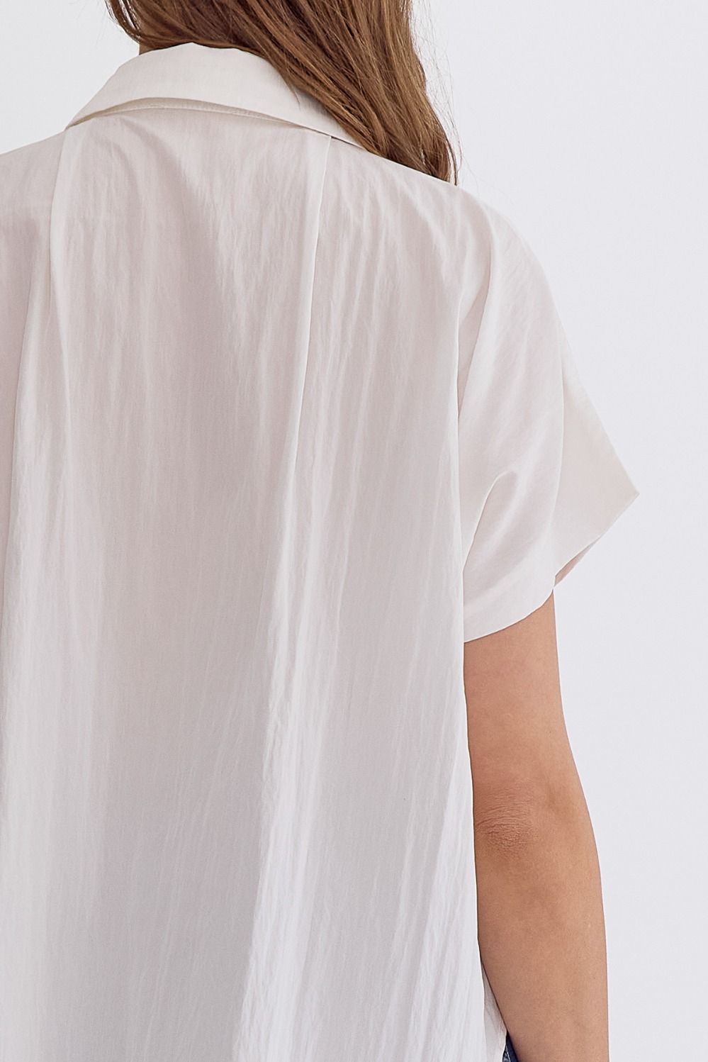 • Solid collared button up short sleeve top