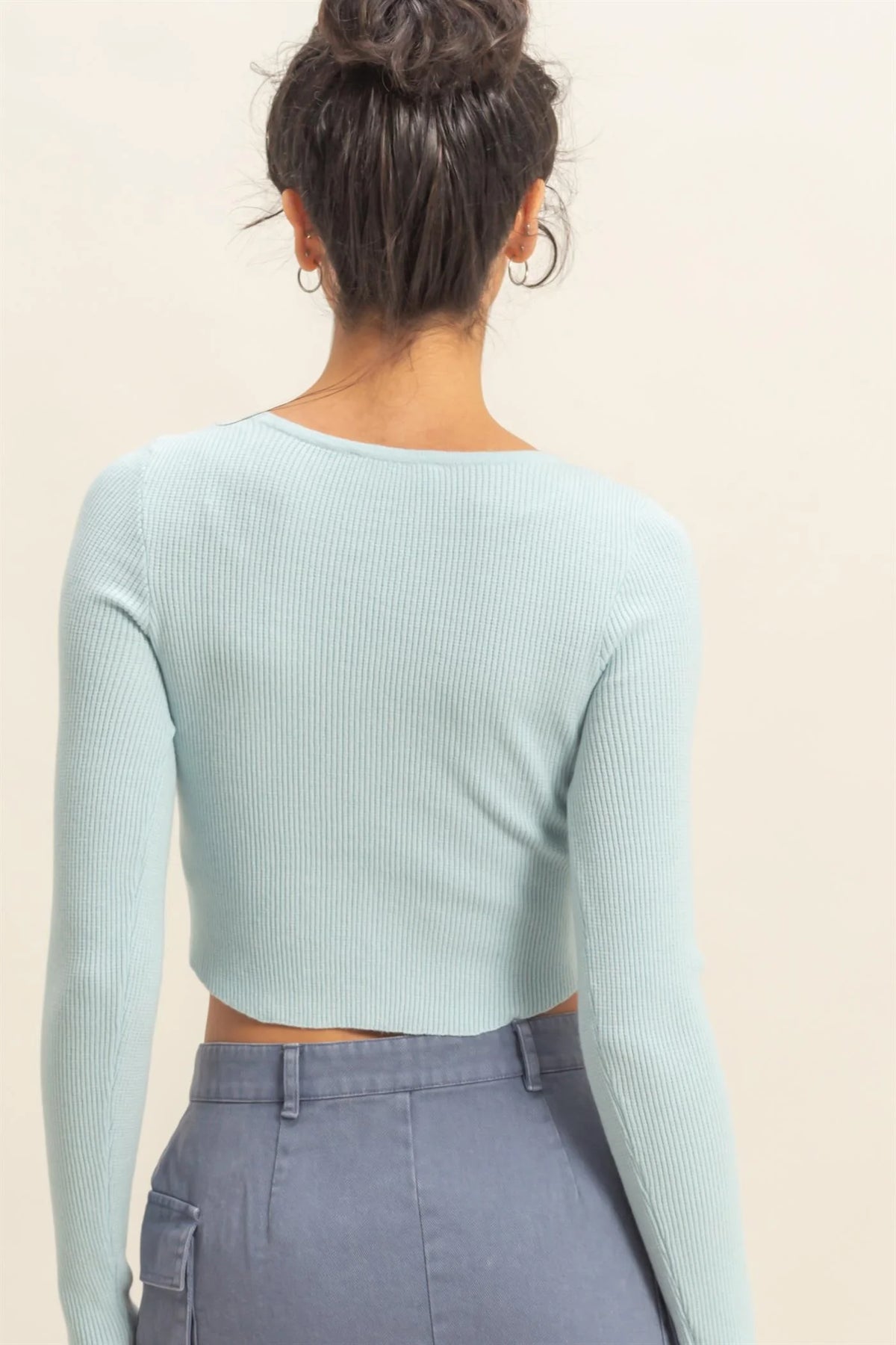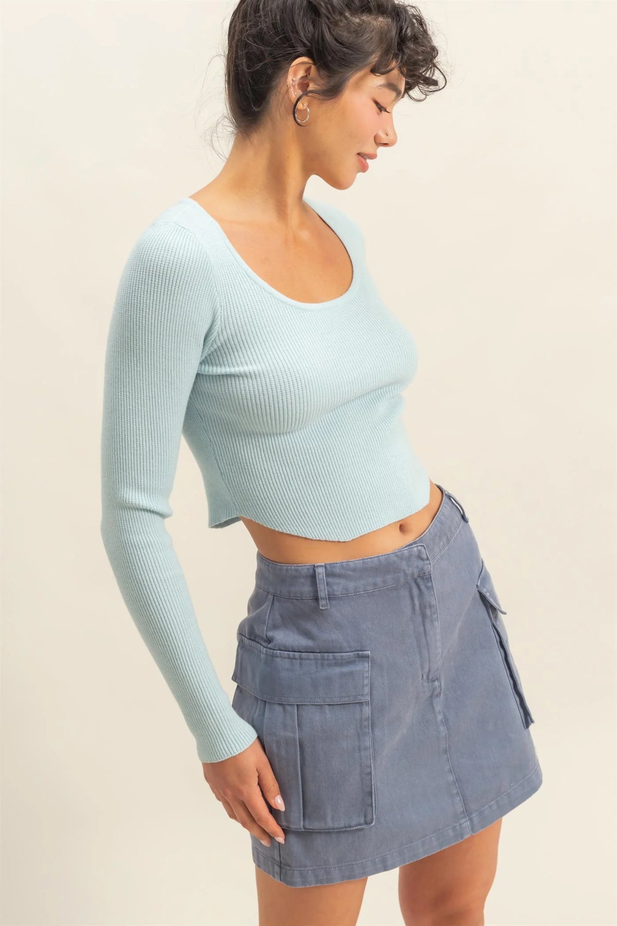 • Scoop neck long sleeve fitted knit top