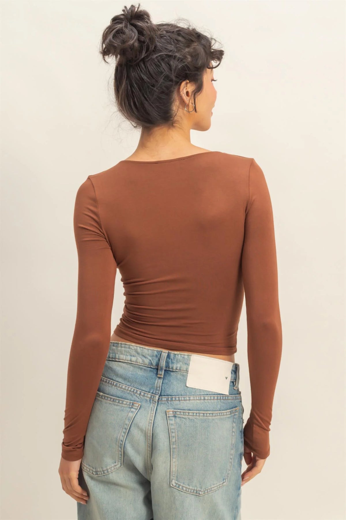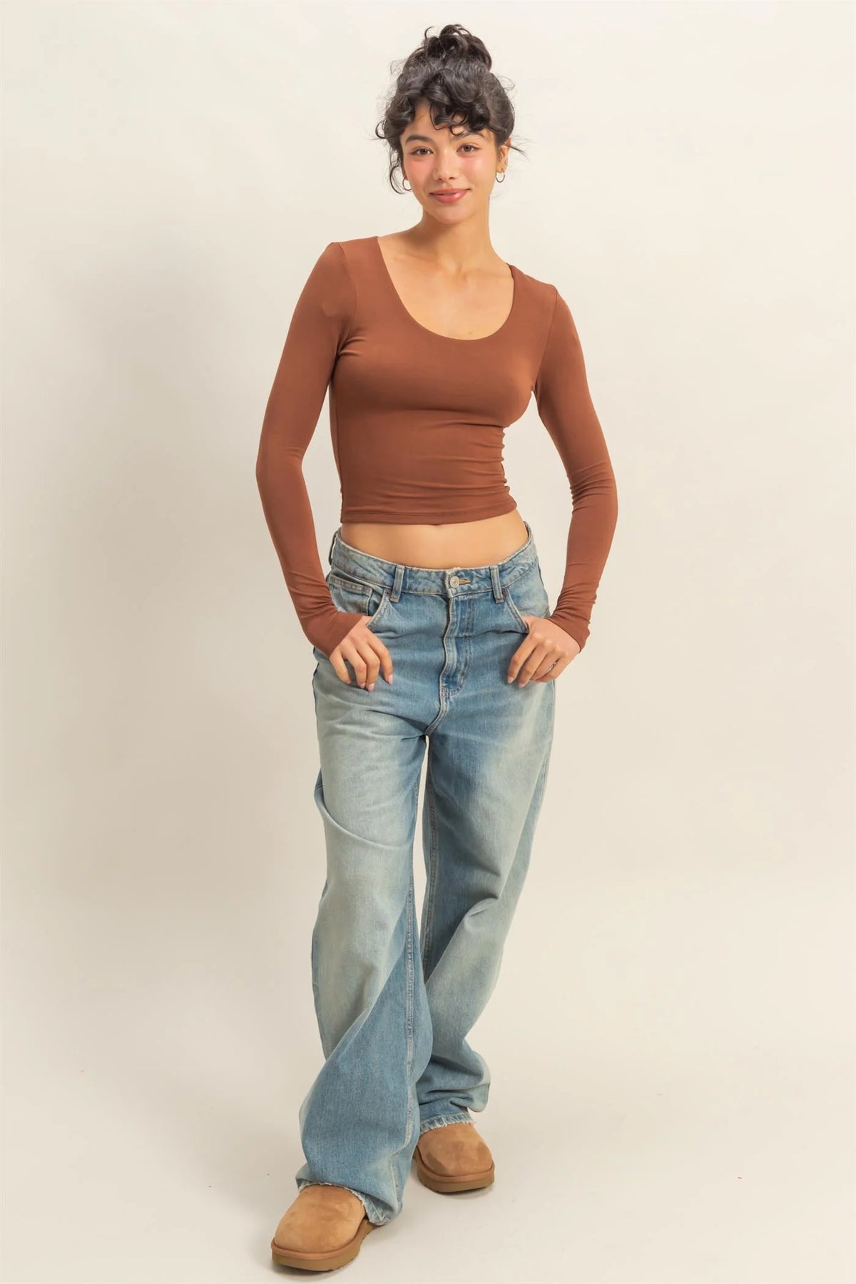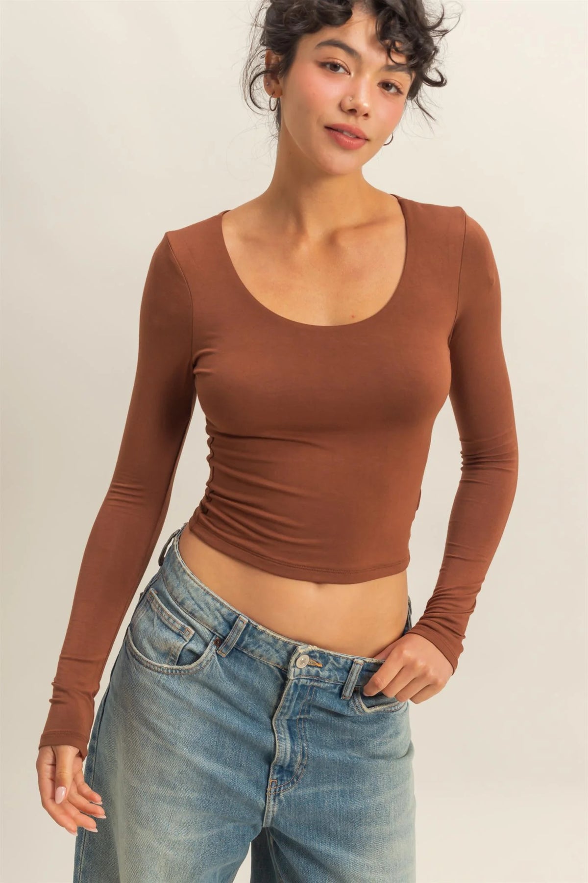 • Scoop neck long sleeve crop top