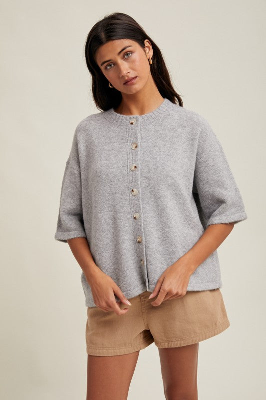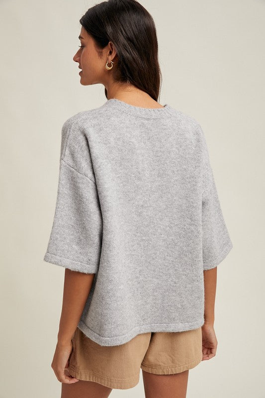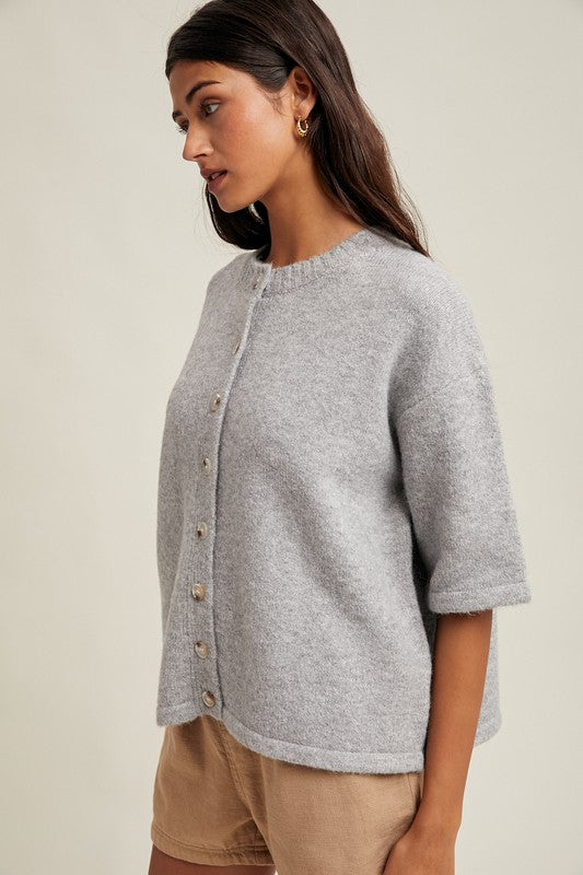 • Brushed 1/2 sleeve button up sweater