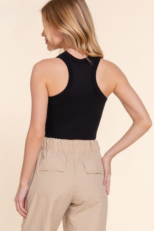 seamless sleeveless ribbed top - black