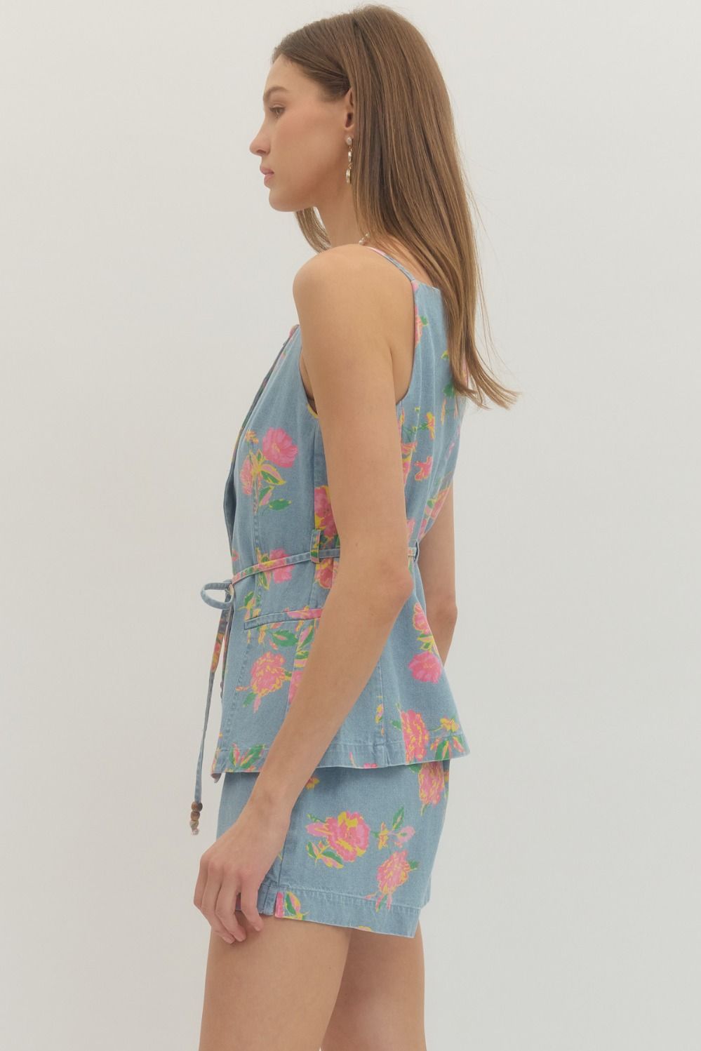 • Floral print sleeveless top featuring straight neckline with shoulder straps