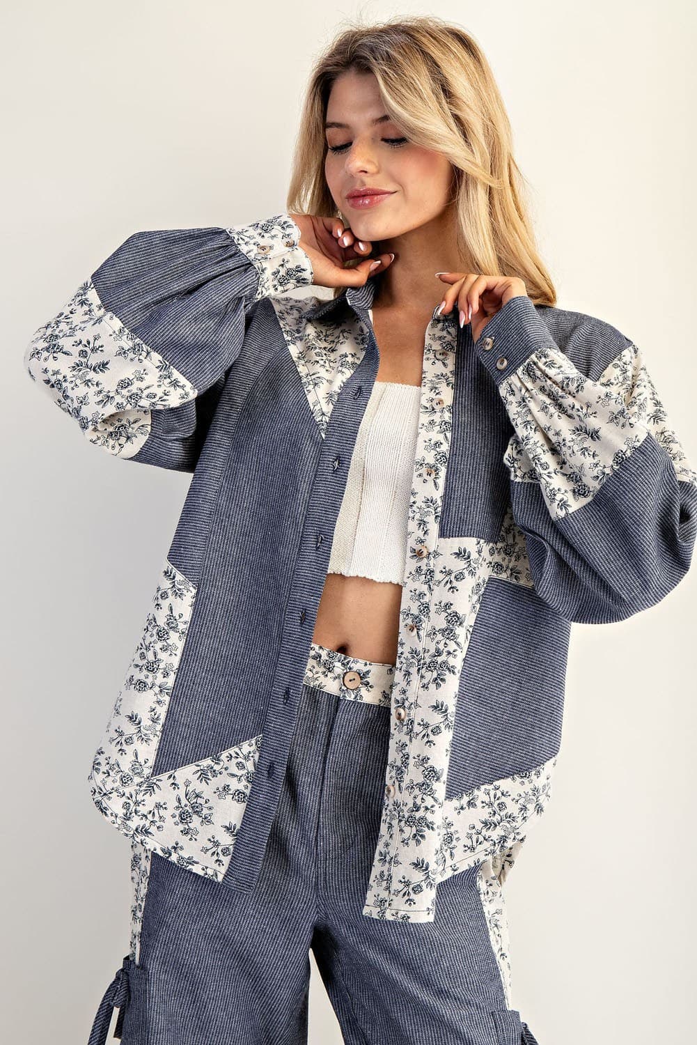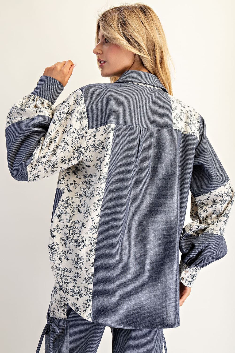 right on cue button down shirt - denim blossom