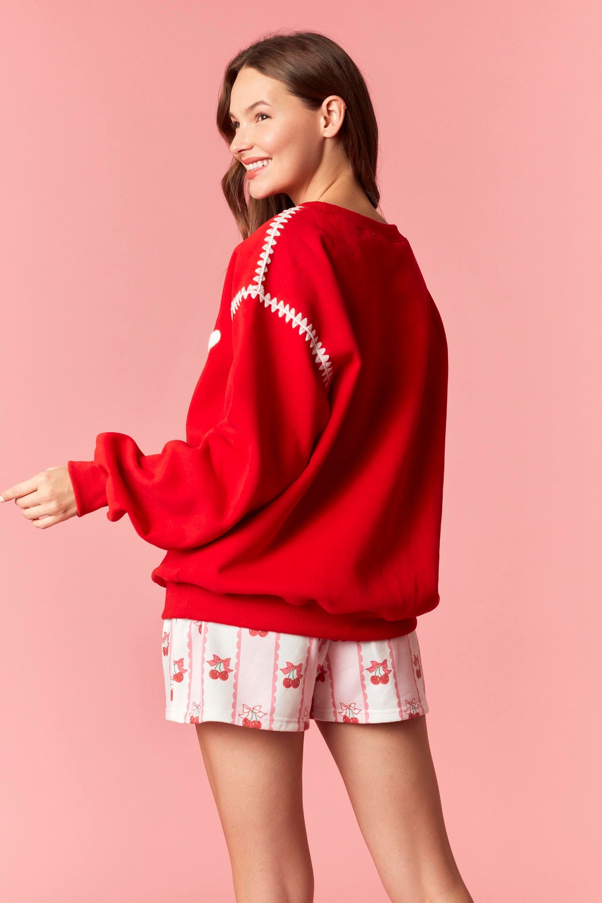 • JOLLY towel embroidery letter & blanket stitch detail sweatshirt