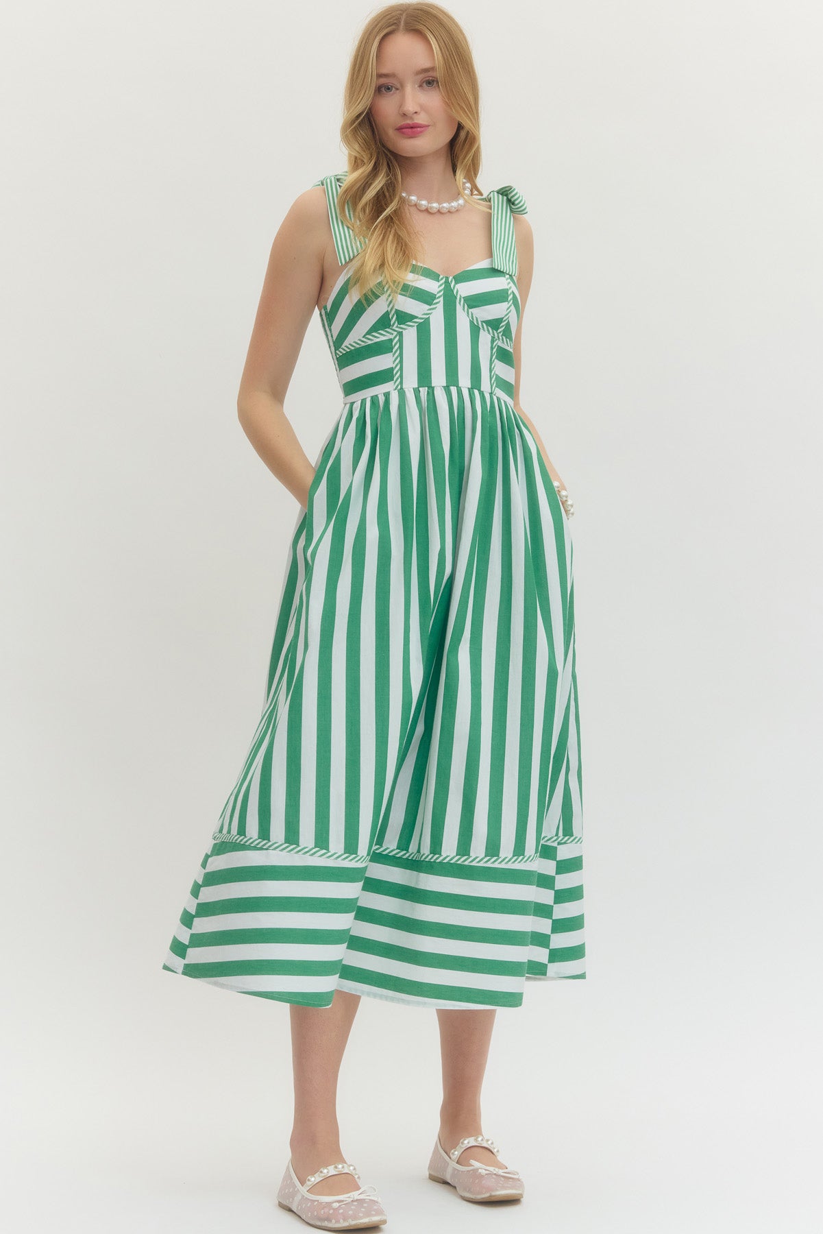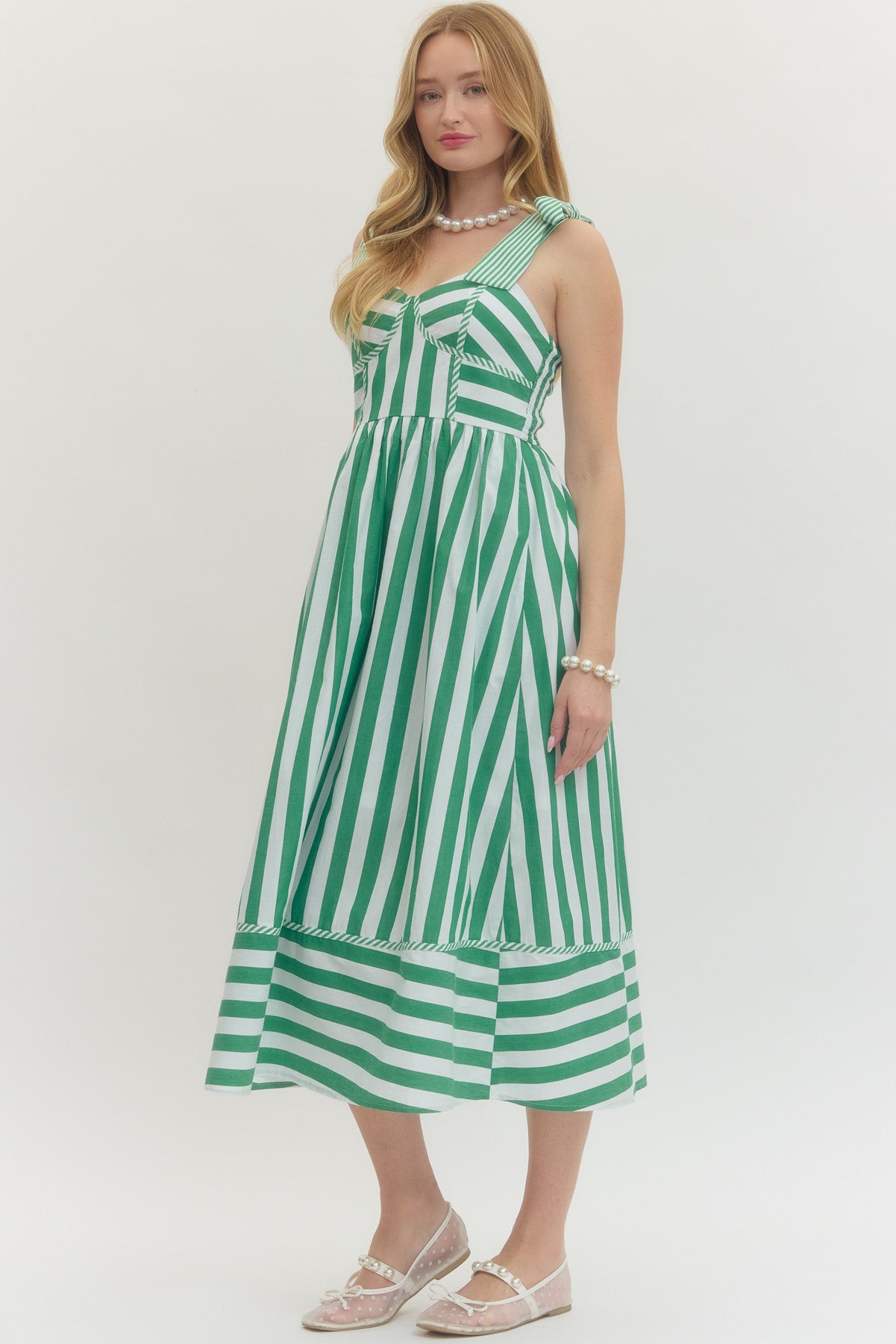 leave it to chance striped midi dress - green