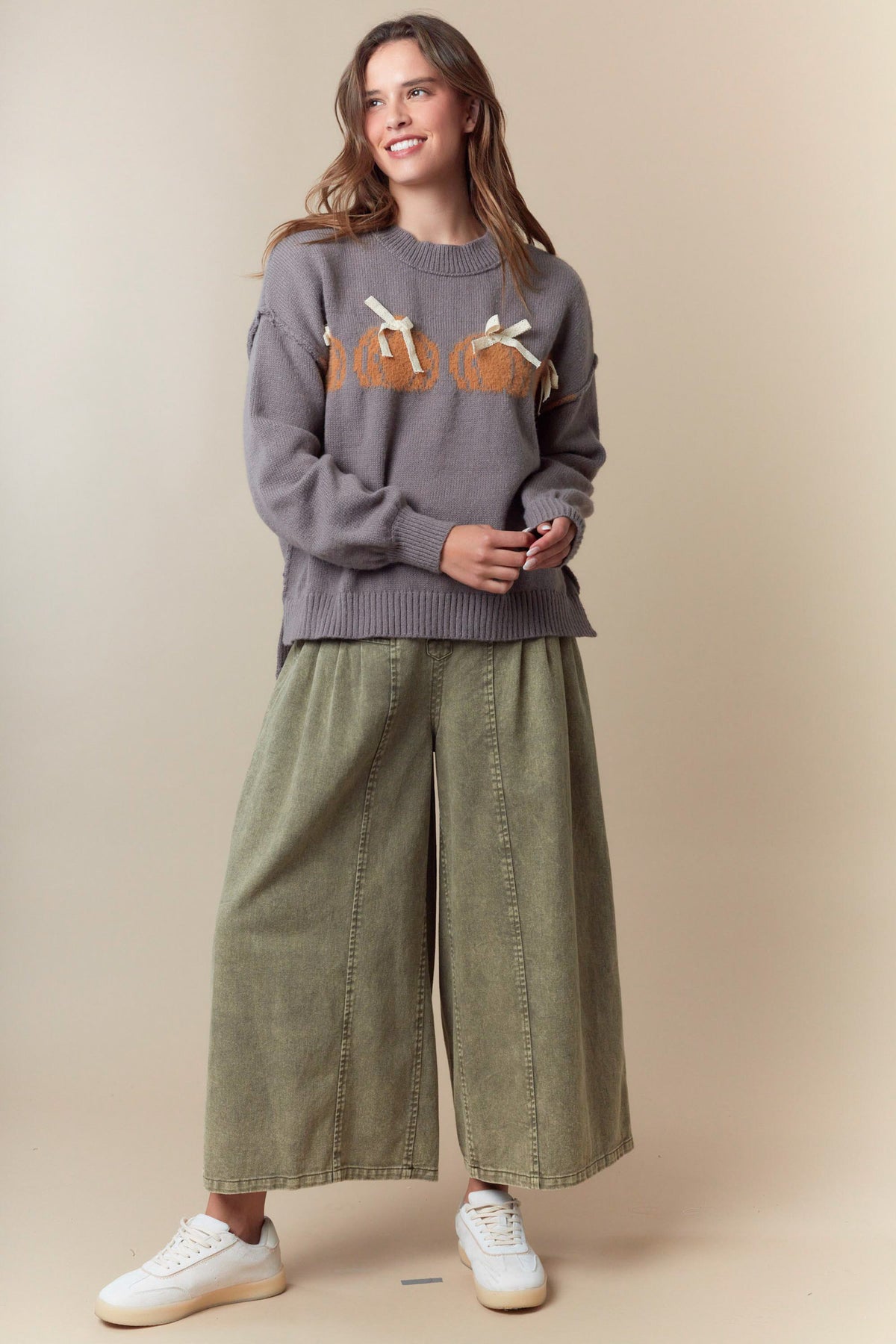 • Pumpkin with lace bow on top detailed sweater
