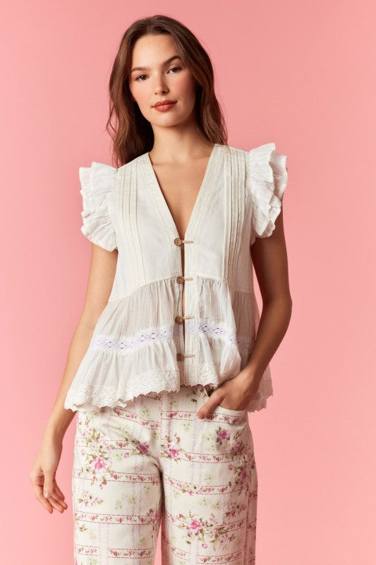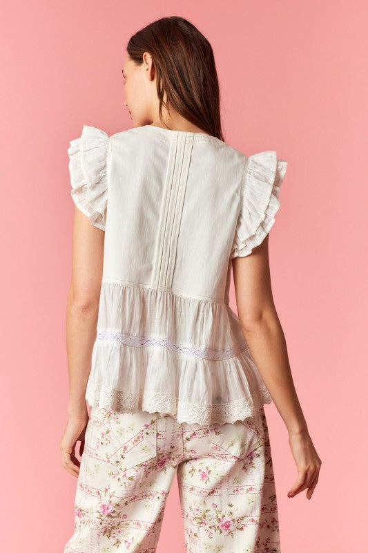 make a wish ruffled top - off white
