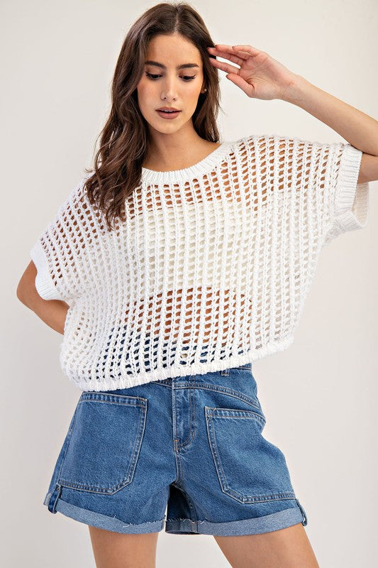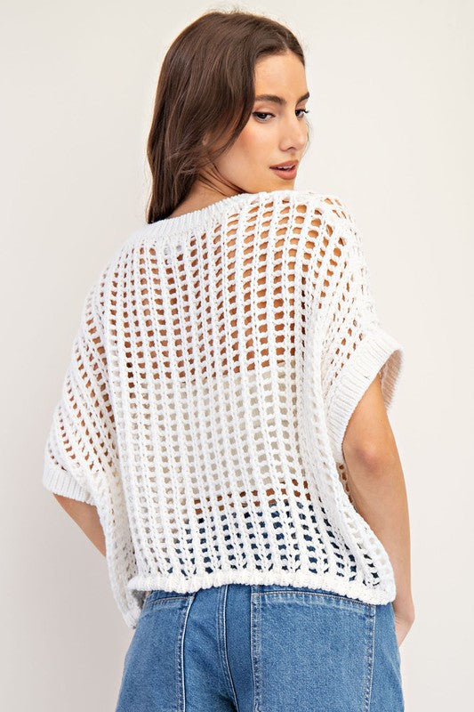 • Crochet knit short sleeve cropped sweater