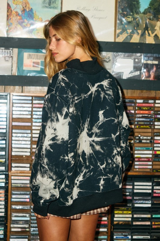 • Tie dye print mock neck oversized sweatshirt