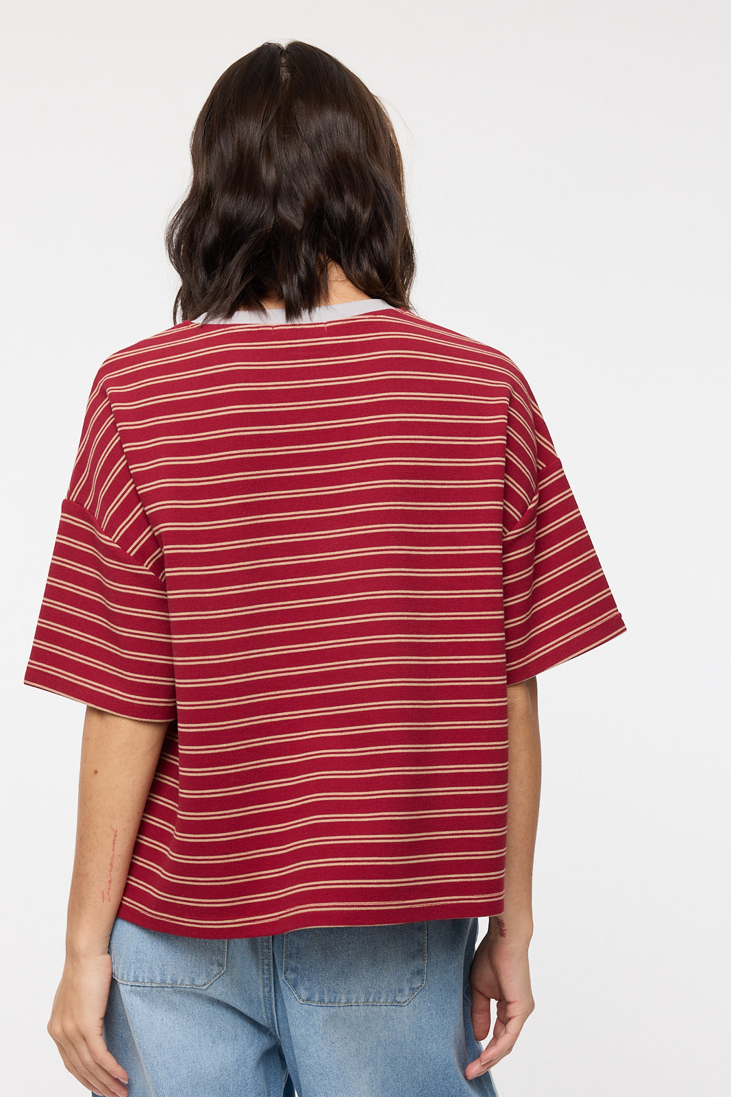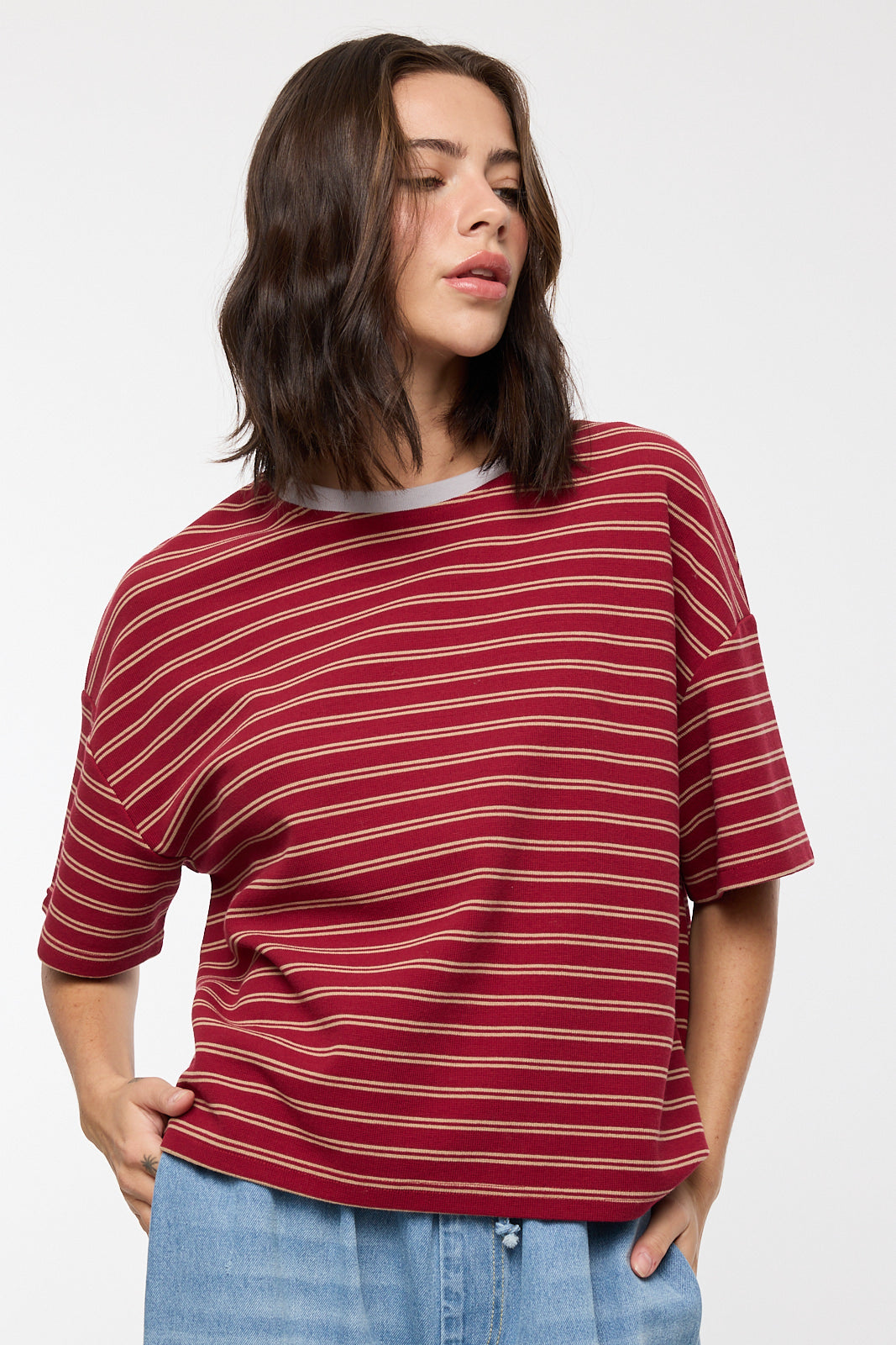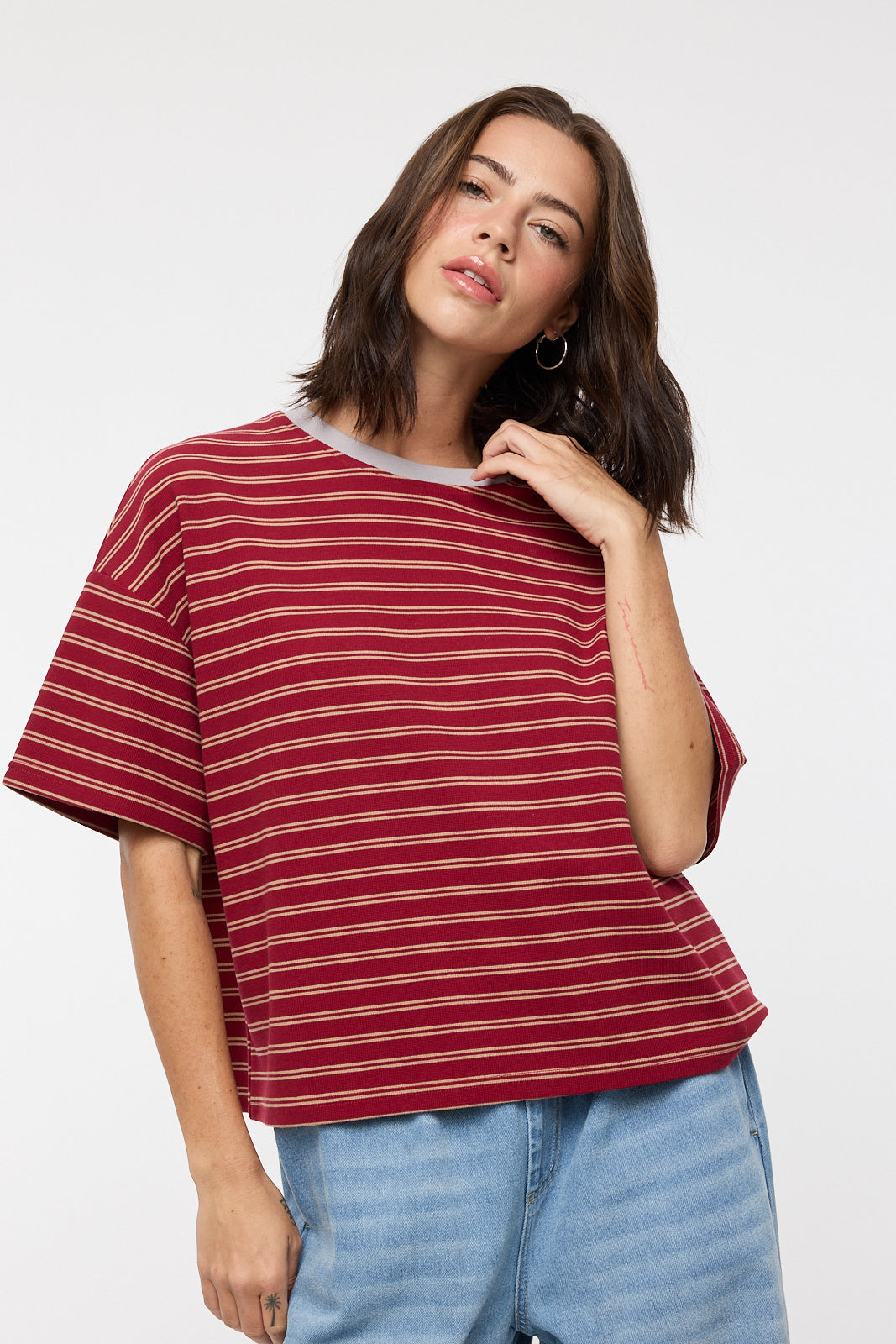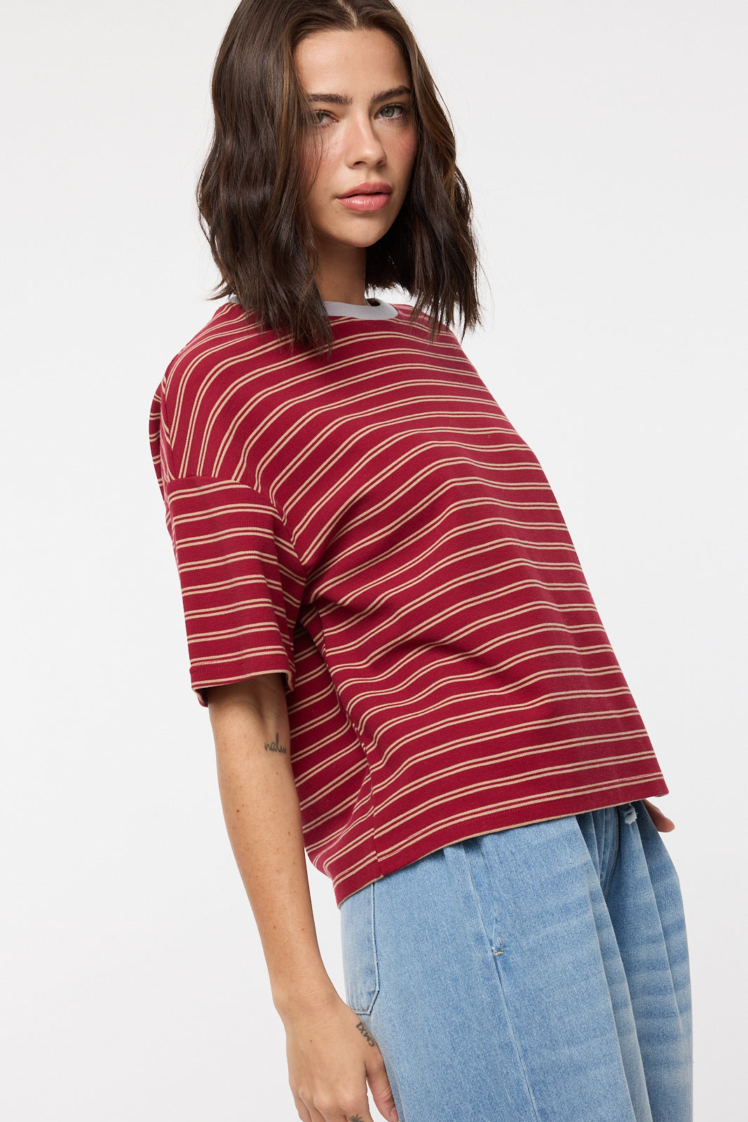 • Contrast striped relaxed crop tee