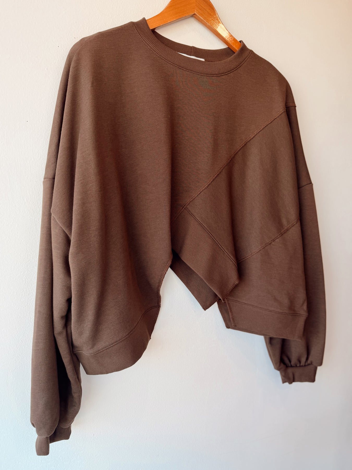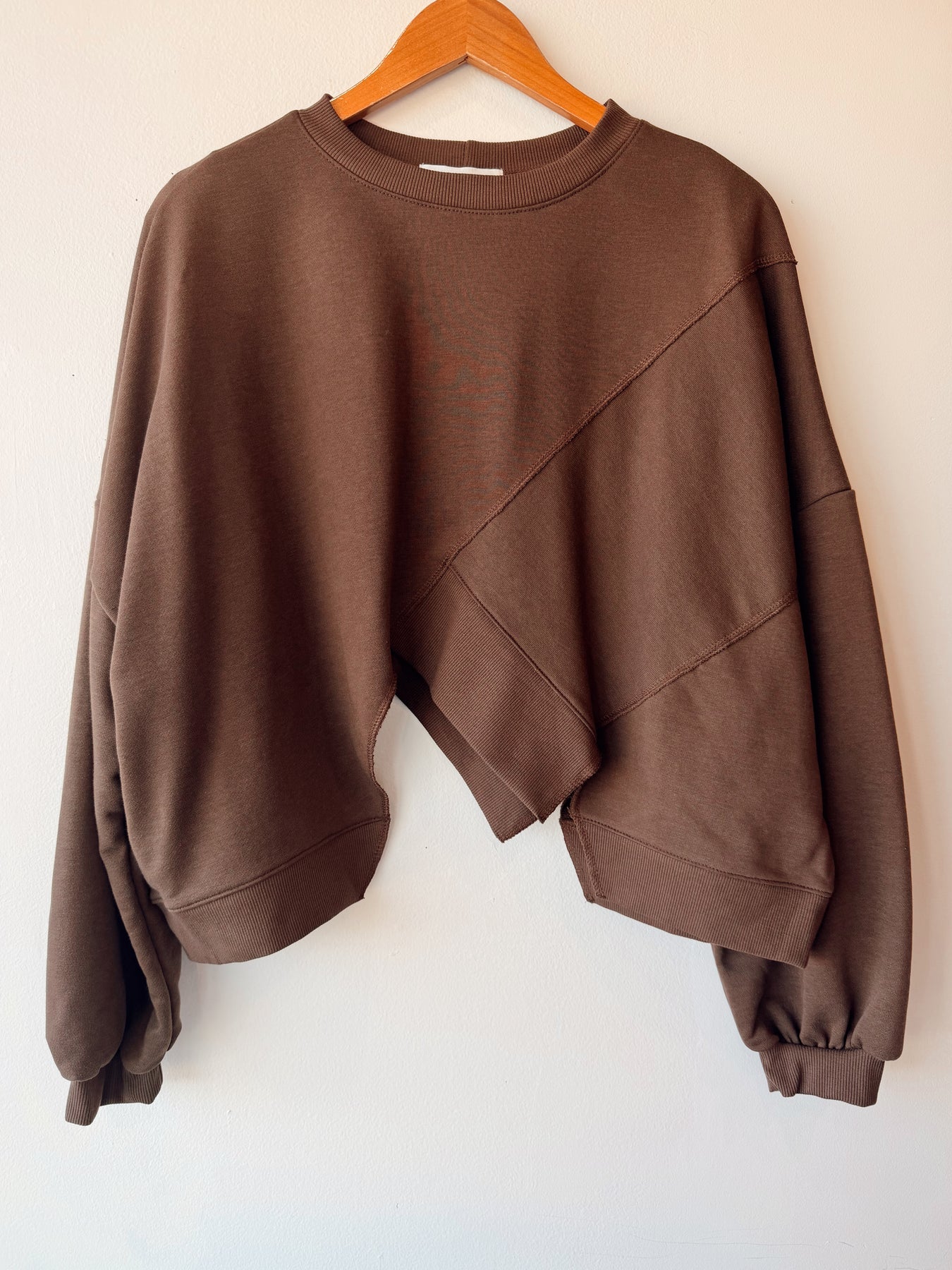 • Asymmetric hem solid terry sweatshirt top
