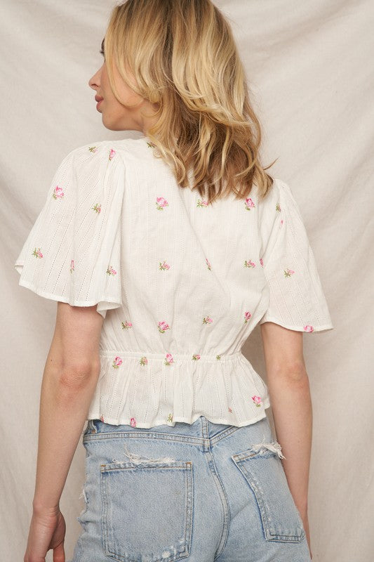 blush in bloom embroidered top - white