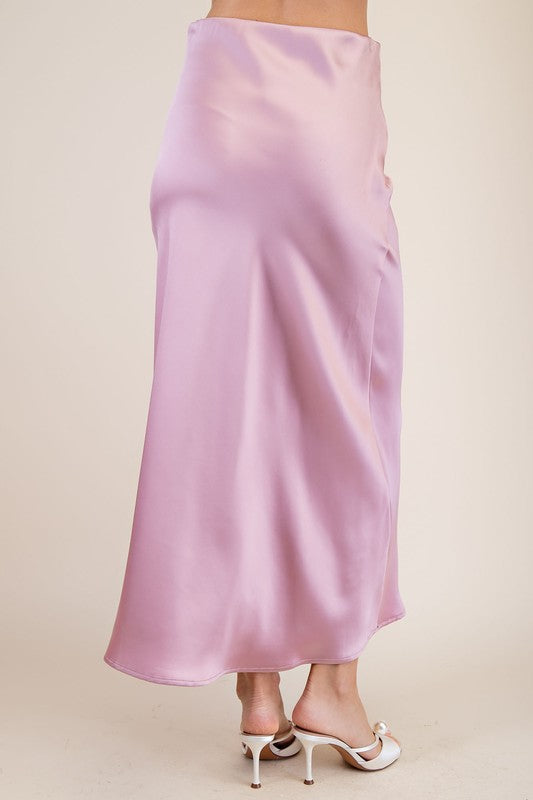 into the deep satin midi skirt - blush