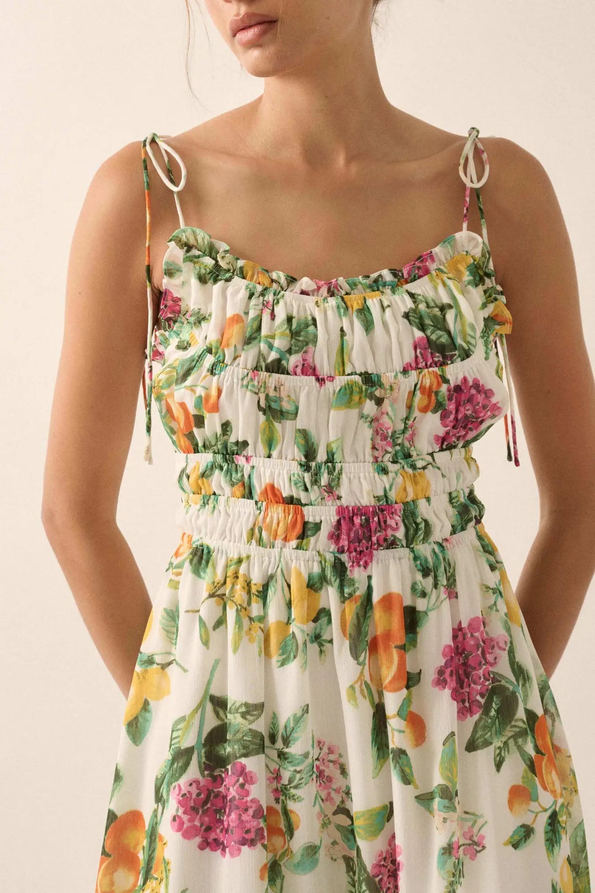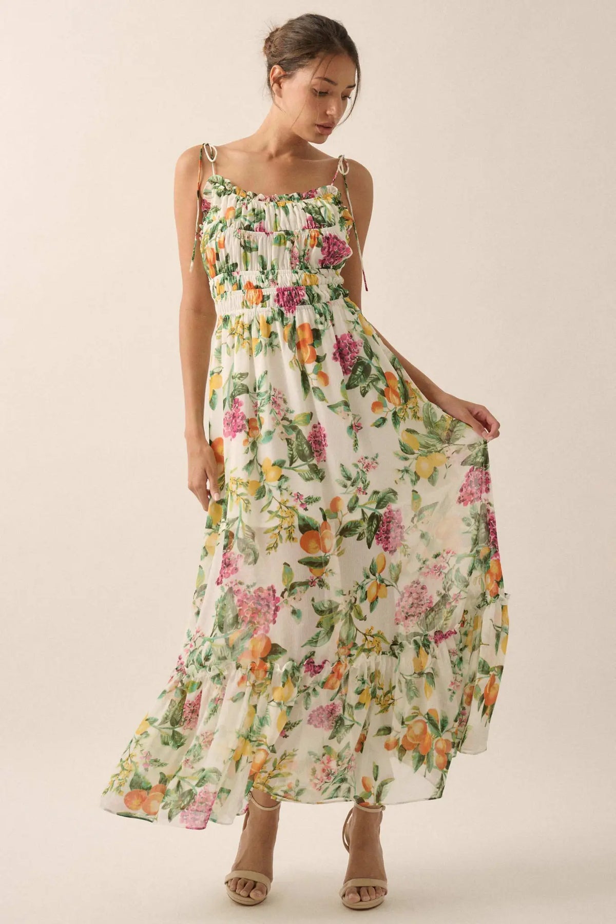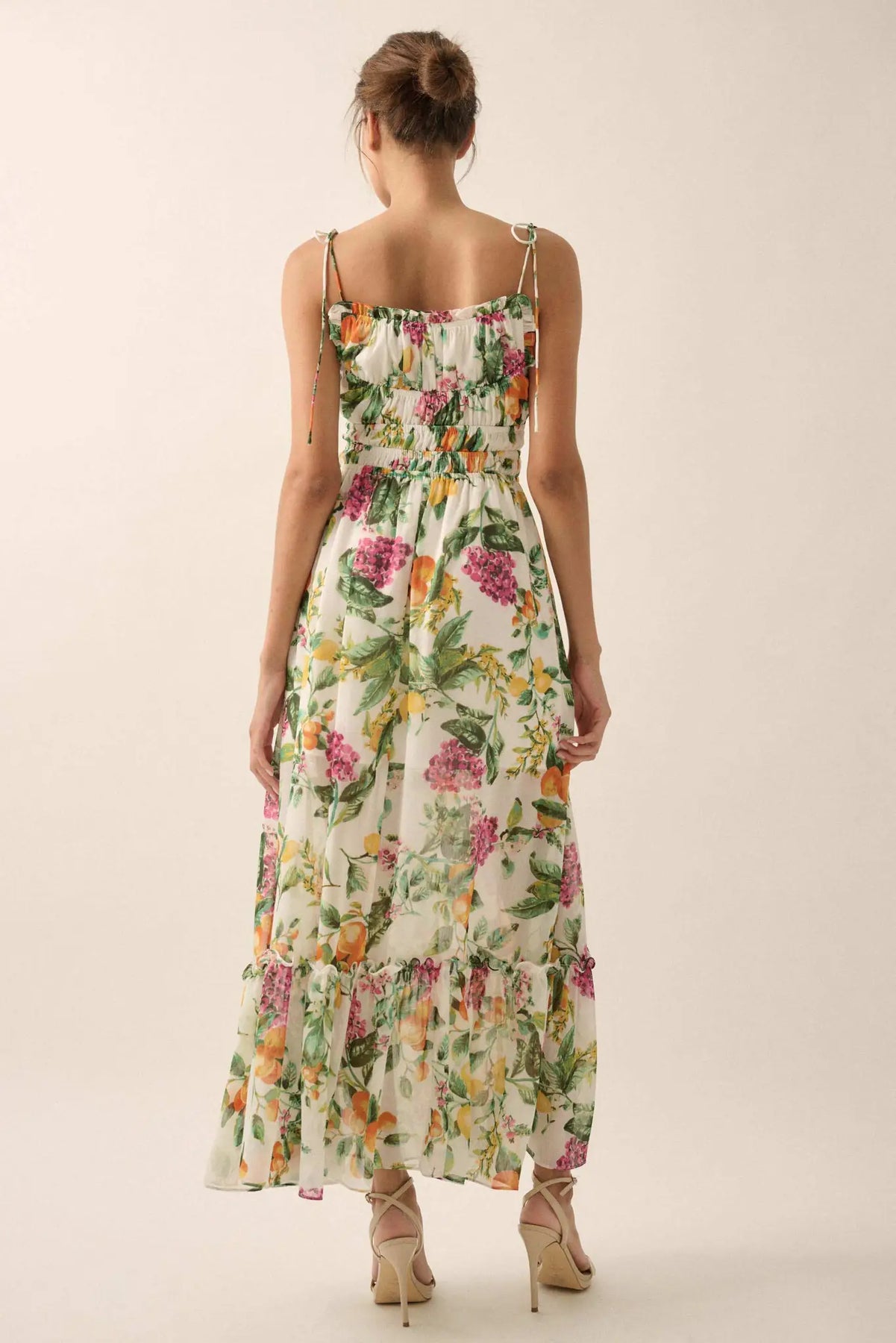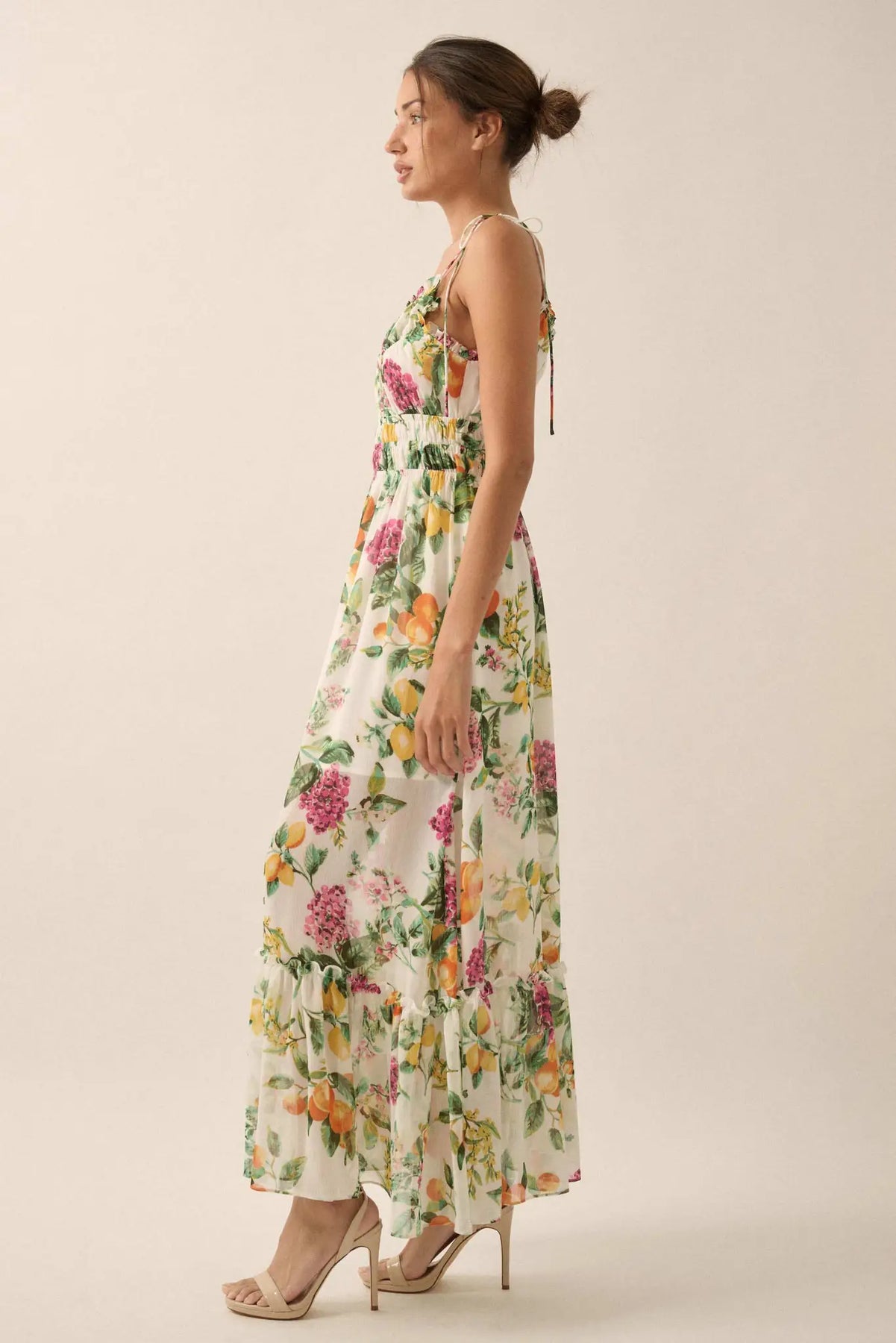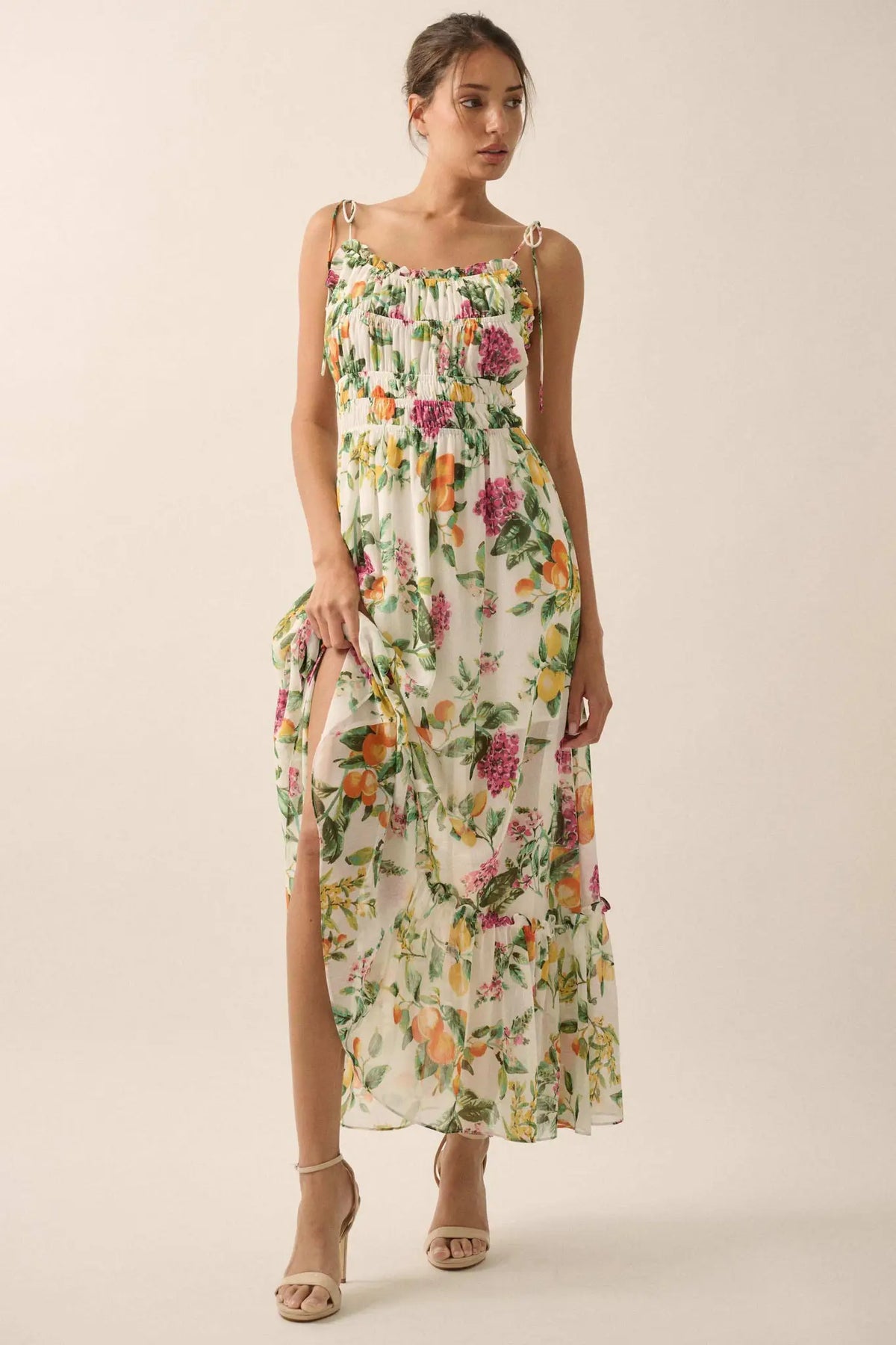 • Fruit and floral print chiffon maxi dress