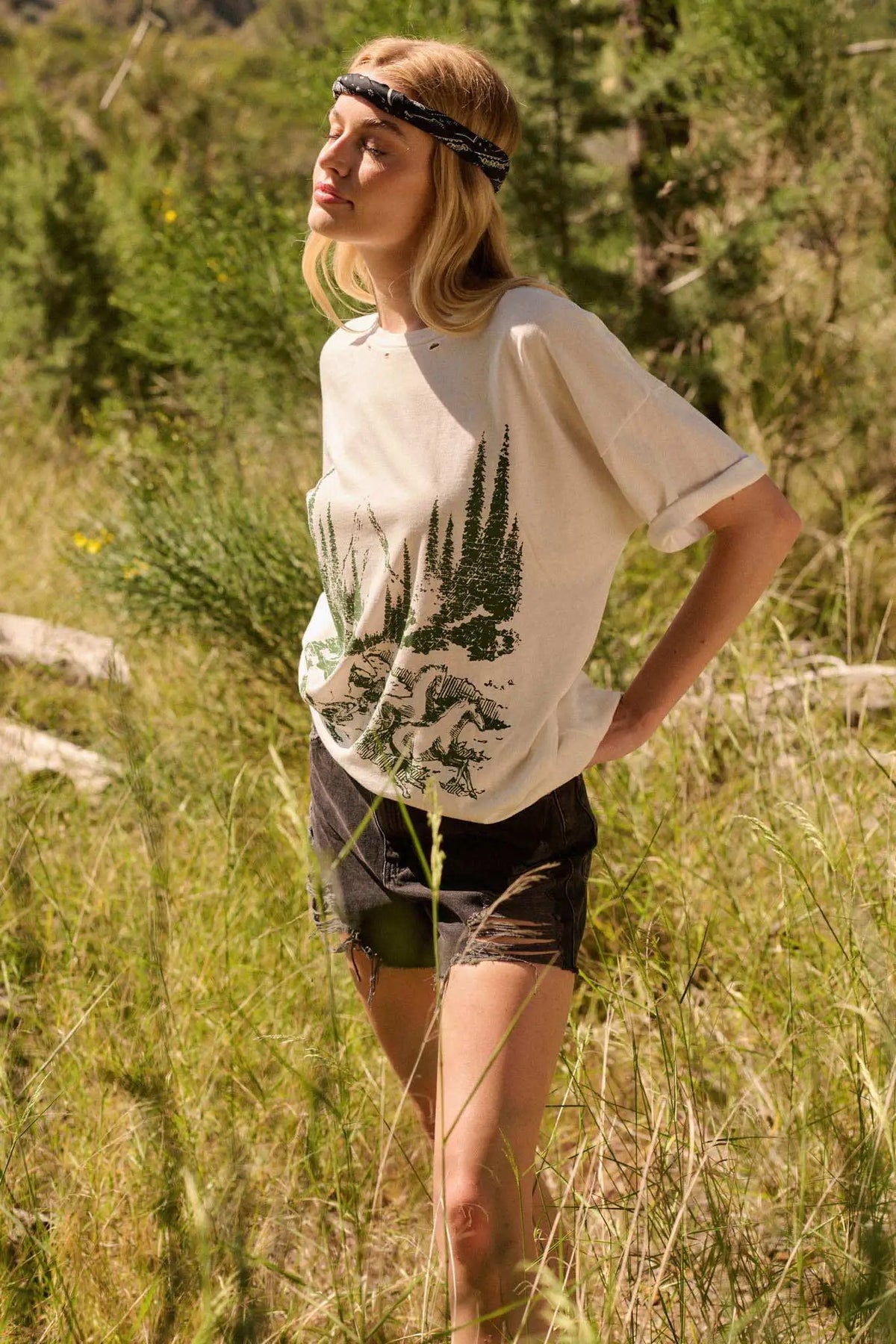 • Torn and distressed detailing at neckline, cuffs, and hem